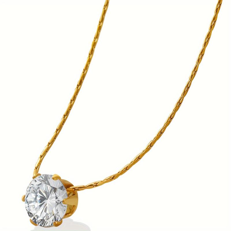 Elevate your everyday style with this chic choker necklace featuring synthetic cubic zirconia stones. Crafted from durable stainless steel with a luxurious 18K gold plating.