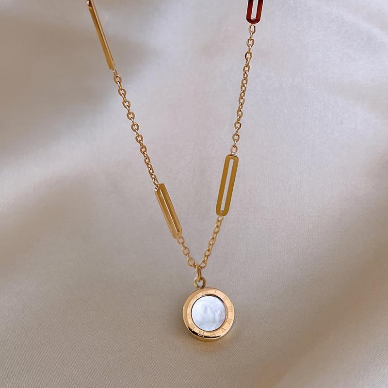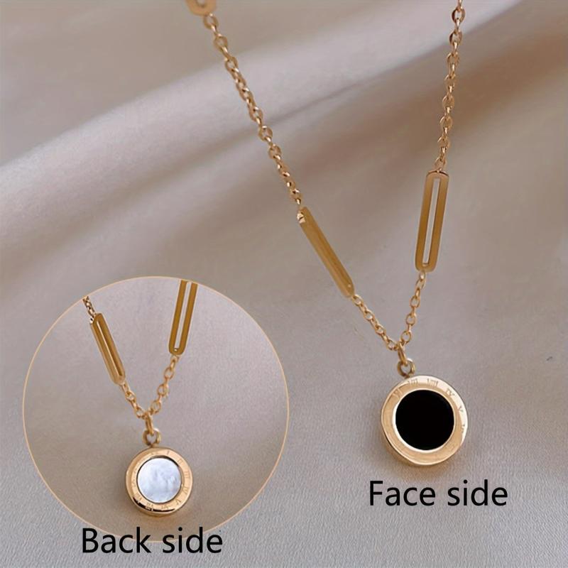 Elegant vintage jewelry piece featuring a dual-sided shell design with Roman numeral pin and adjustable toggle clasp. Perfect for daily wear and special occasions.