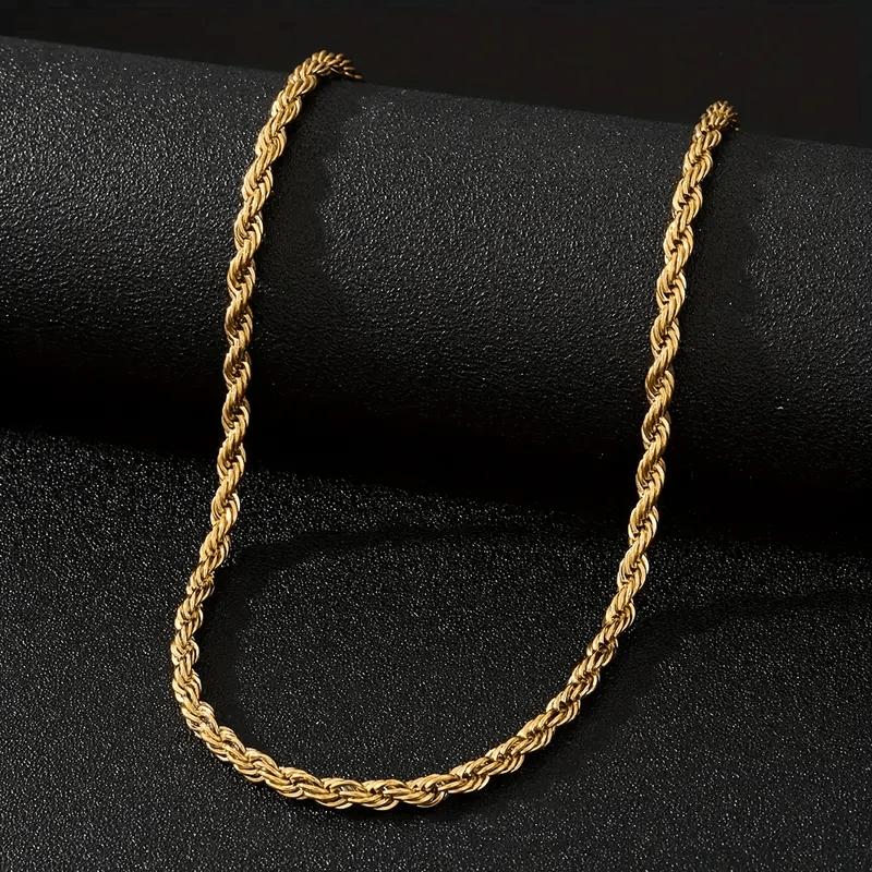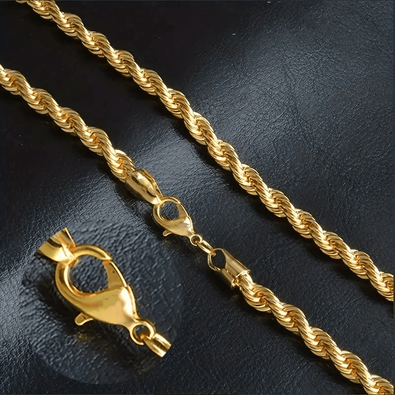 This elegant twisted rope chain necklace is perfect for celebrations, festivals, and casual attire. The 18K gold plating adds a touch of luxury to any outfit.