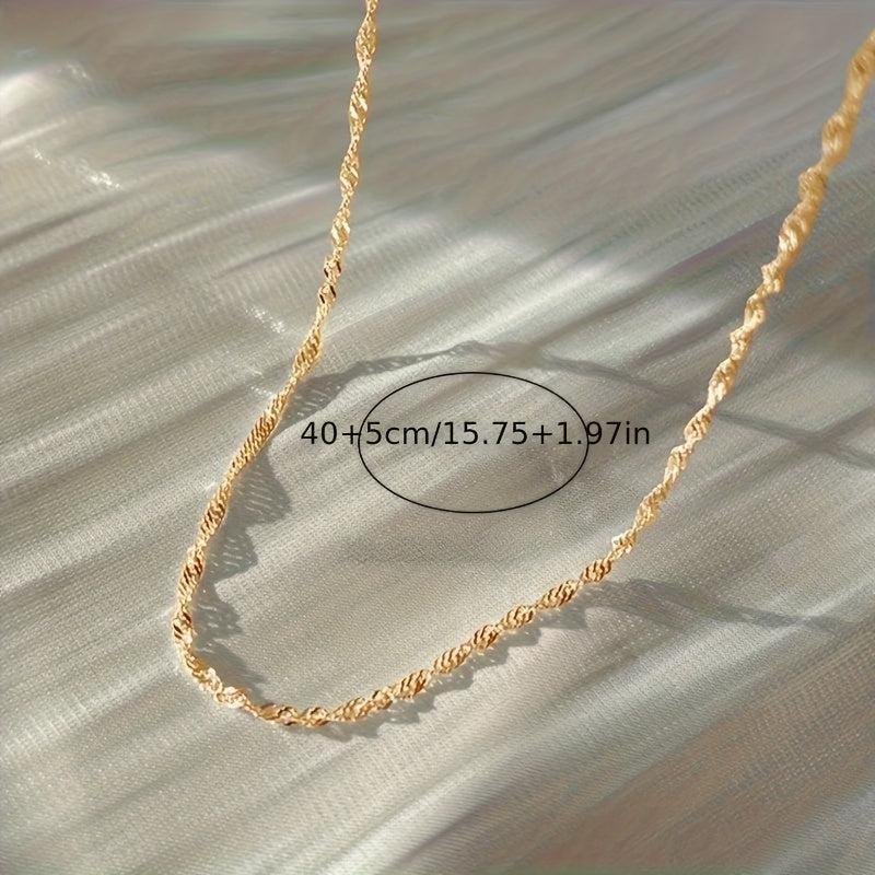 Elegant and durable, this thin chain necklace is plated with 18K gold, perfect for everyday wear or special occasions.