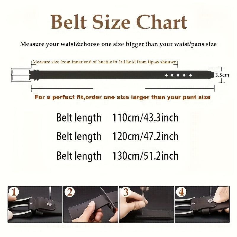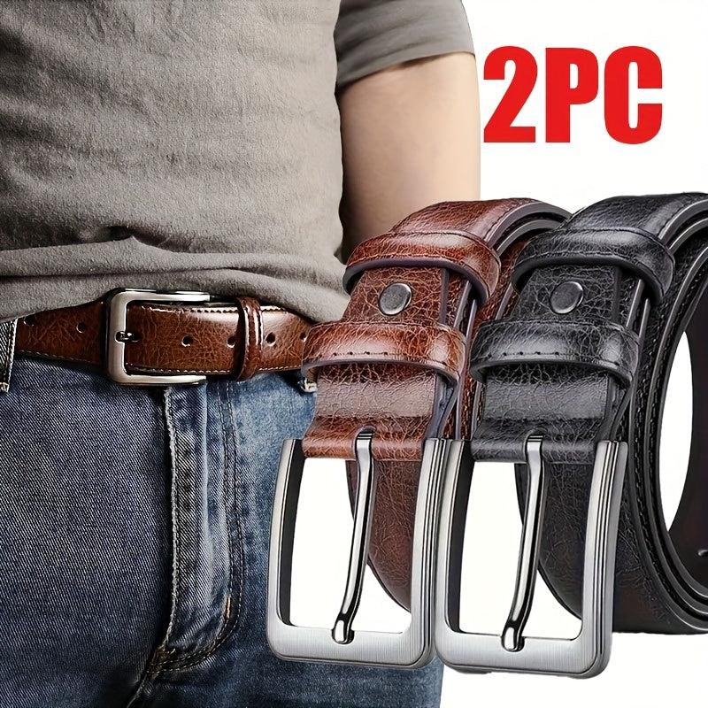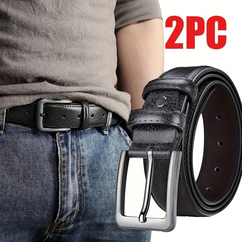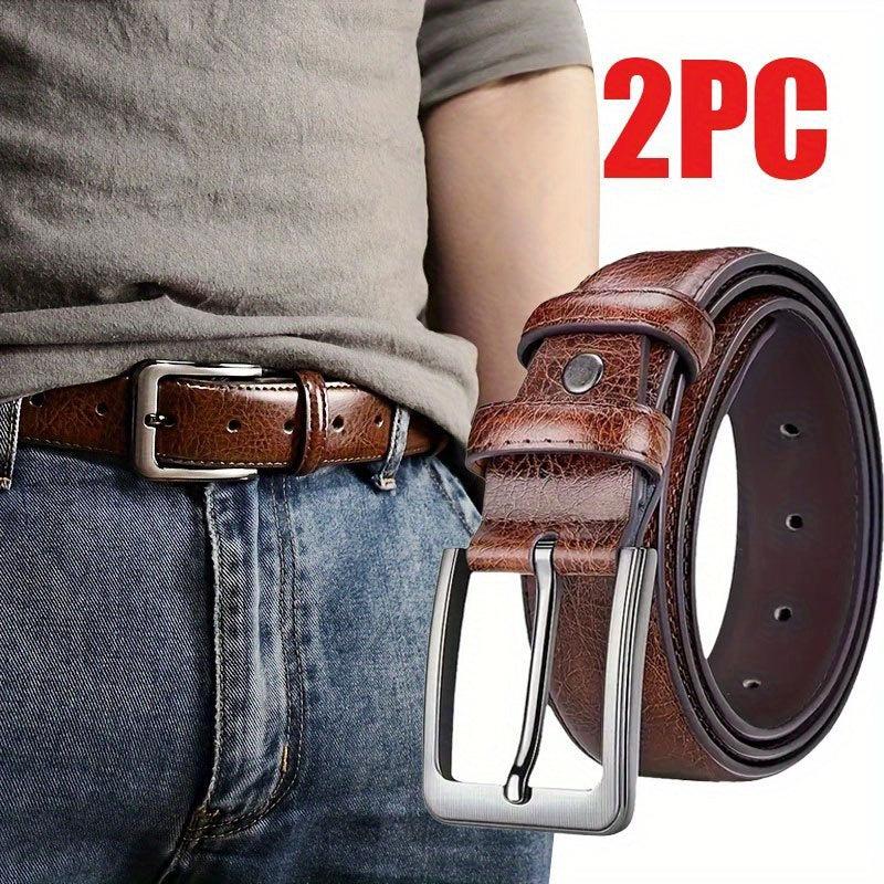 Get this set of 2 casual business belts for men with square buckle design. Made of high-quality embossed PU leather and alloy metal buckles. Ideal for office, sports, and dates.