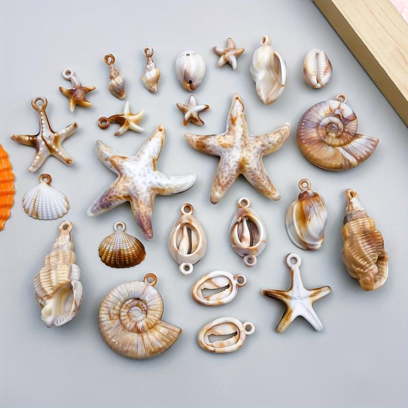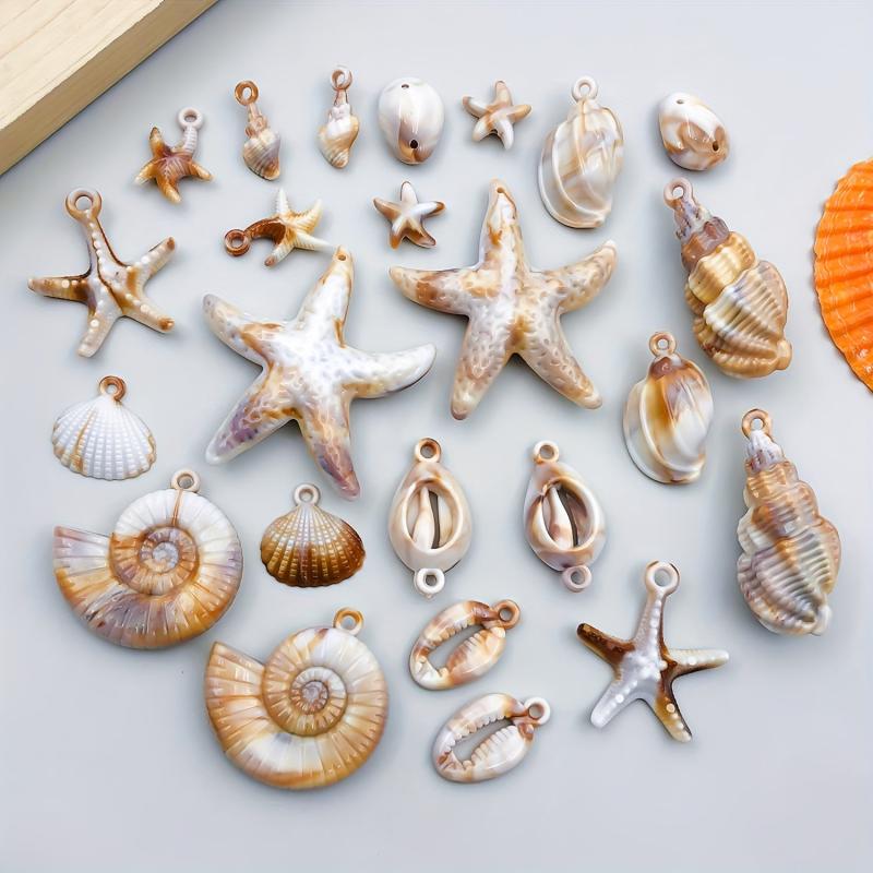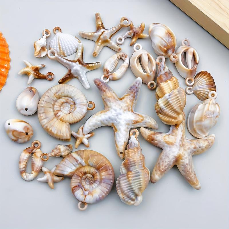 24pcs Ocean Jewelry Charms Acrylic Shell Sea Star Conch Charms Set DIY Jewel