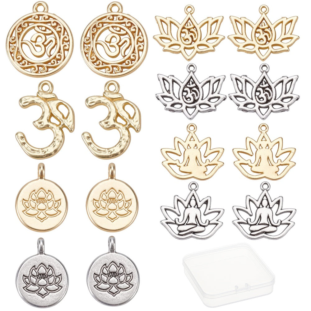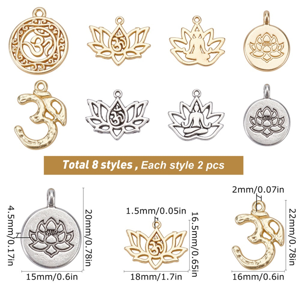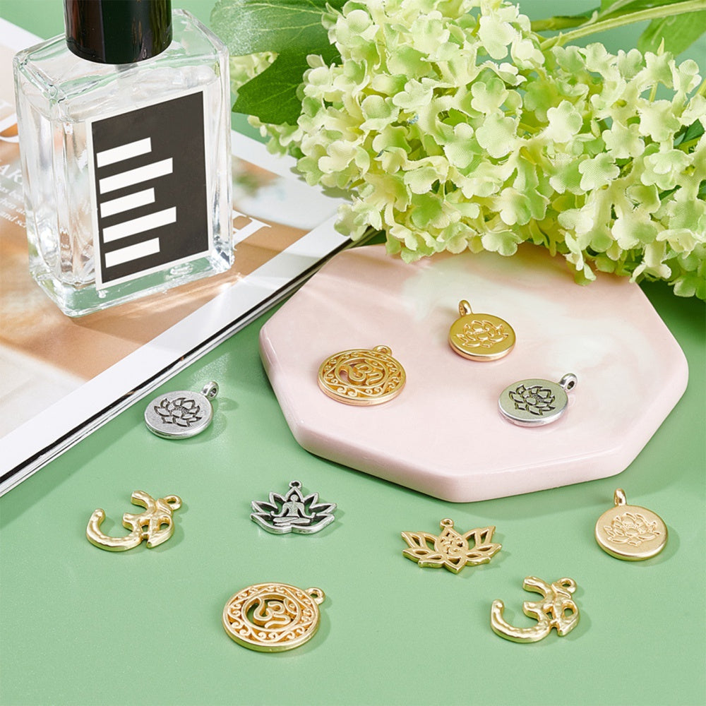 This set includes 24pcs of antique silver and golden mixed alloy pendants featuring 8 different yoga theme designs. Perfect for creating your own unique necklaces or bracelets.