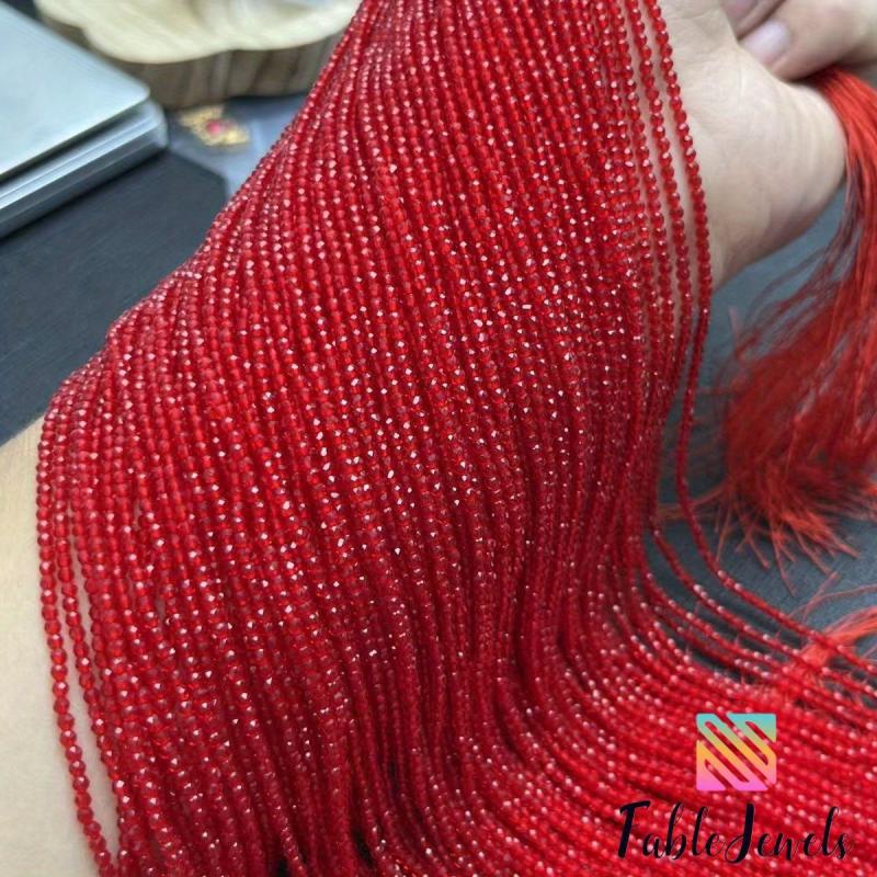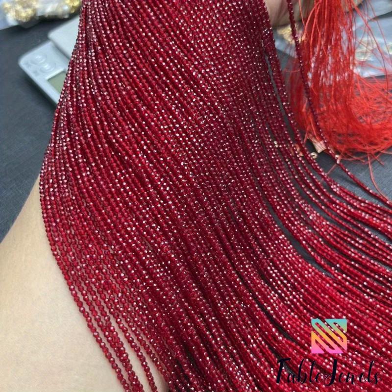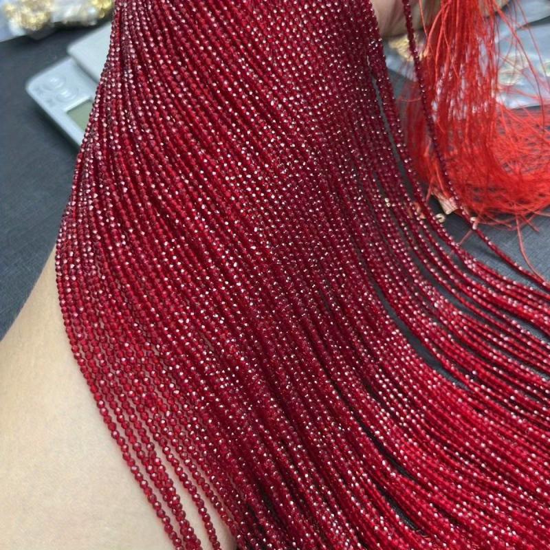 These 2mm red spinel faceted beads come in a length of 14-17 inches, perfect for DIY jewelry. Add these semi-finished loose beads to your collection of accessories.