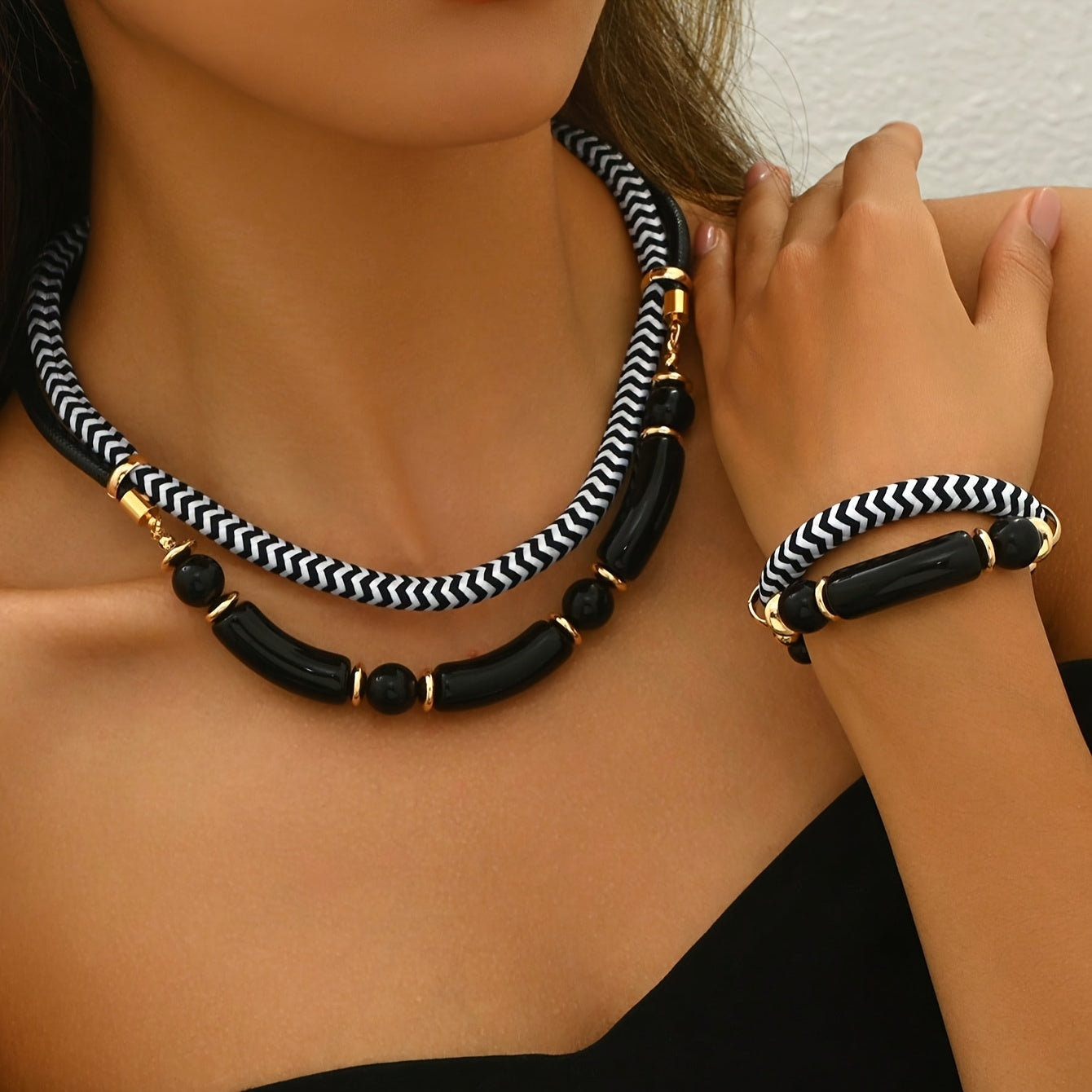 This 2-piece set features a thick double line metal tube design, perfect for all seasons and occasions. It's a stylish and exaggerated hip hop style accessory set suitable for daily wear or festive gifting.