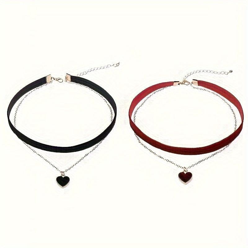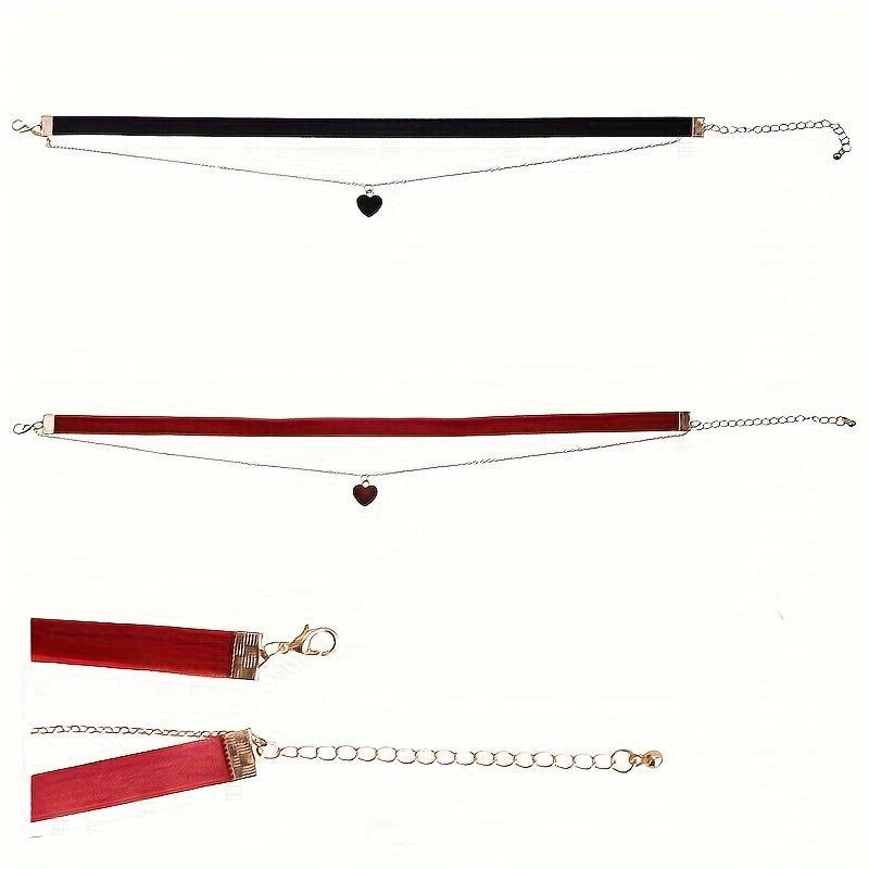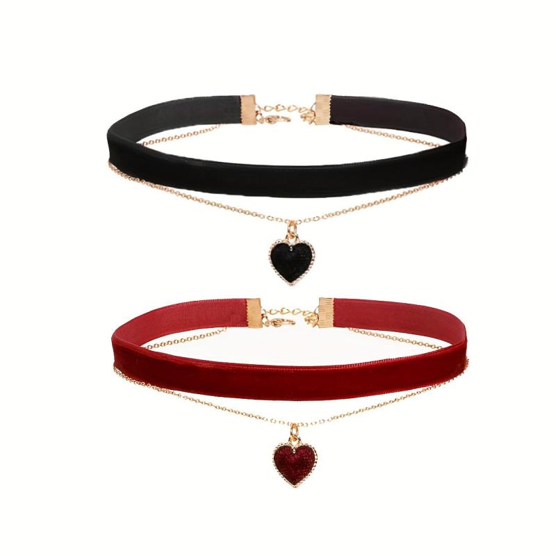 This 2pcs velvet choker necklace set features heart pendant and is perfect for daily wear and as a gift. Made of polyester, it is fashionable and ideal for all seasons.