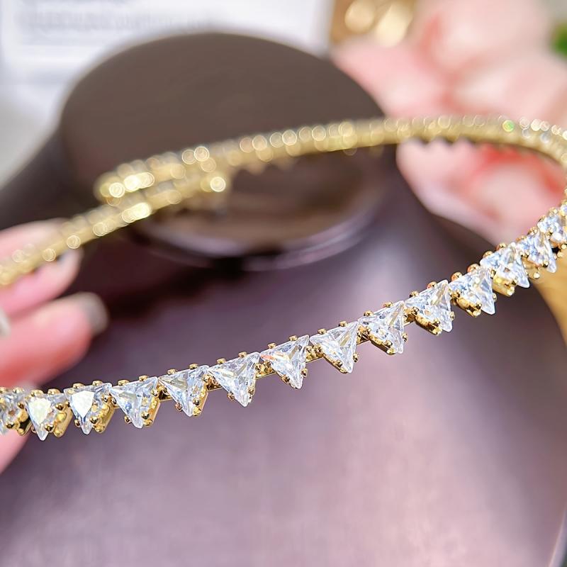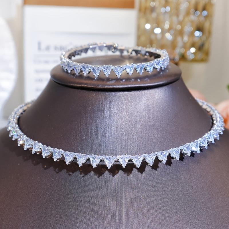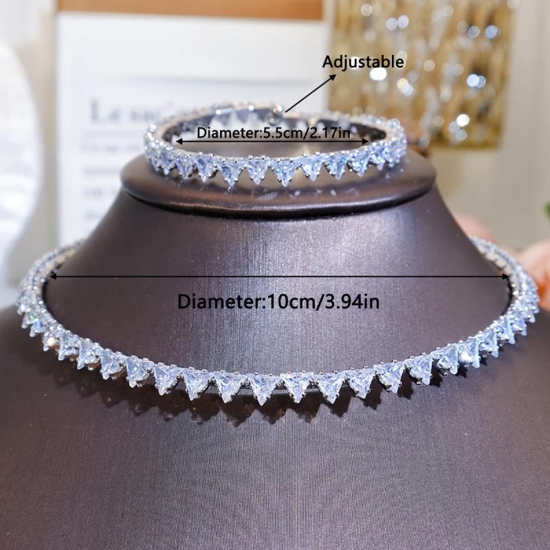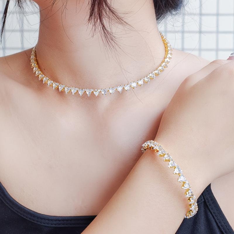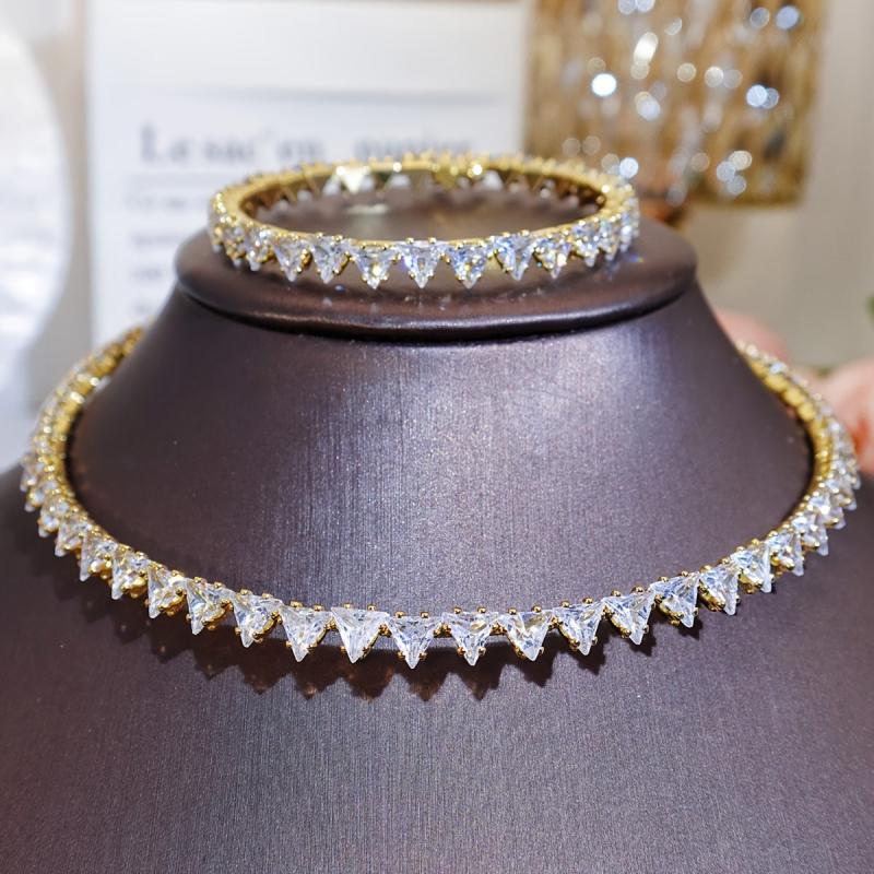 2pcs Zirconia Inlay Triangle Gold Choker Necklace Bangle Set