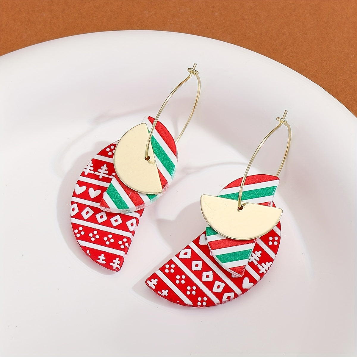 Add a touch of holiday vacation vibe to your outfit with these unique and stylish hoop earrings made of polymer clay with a retro texture design.