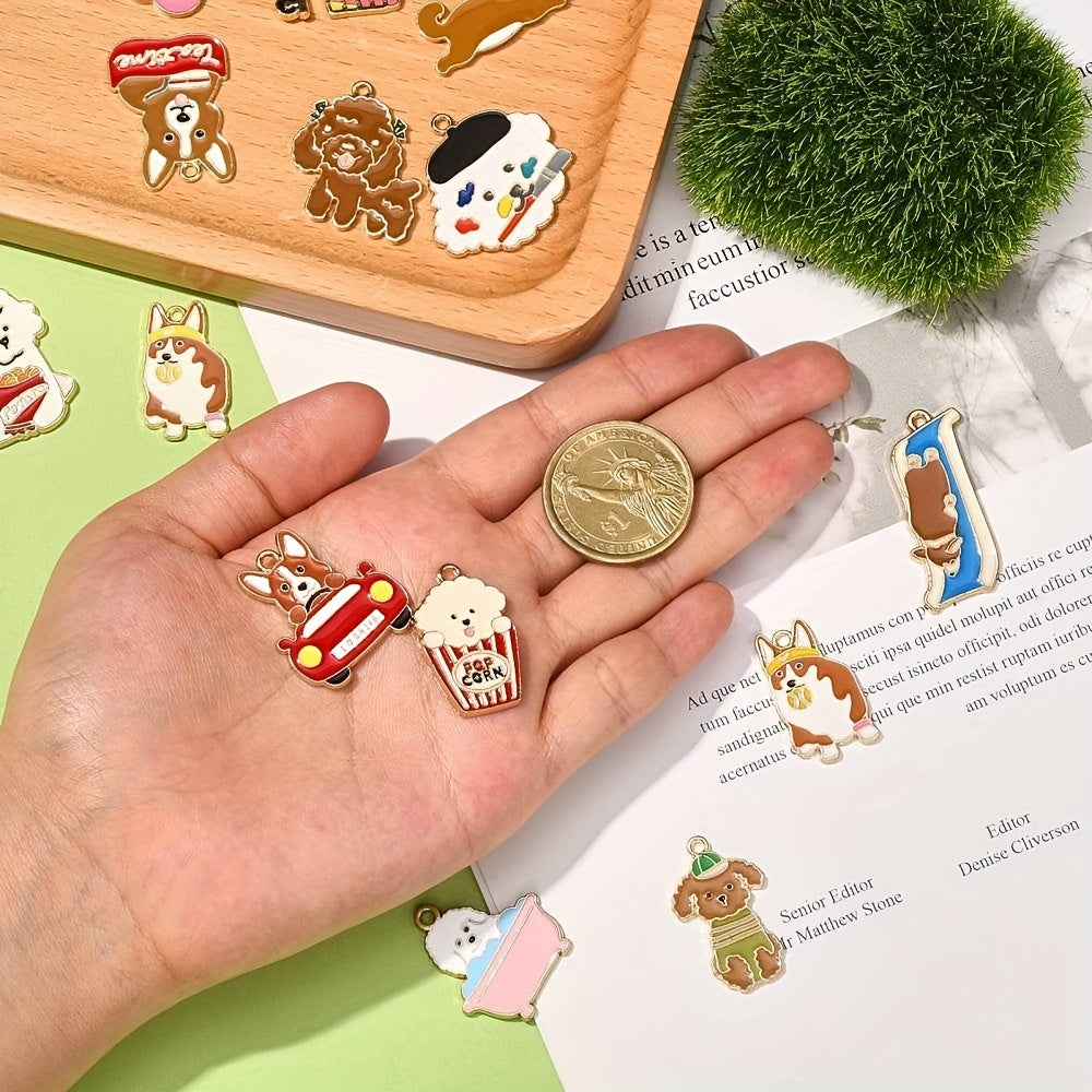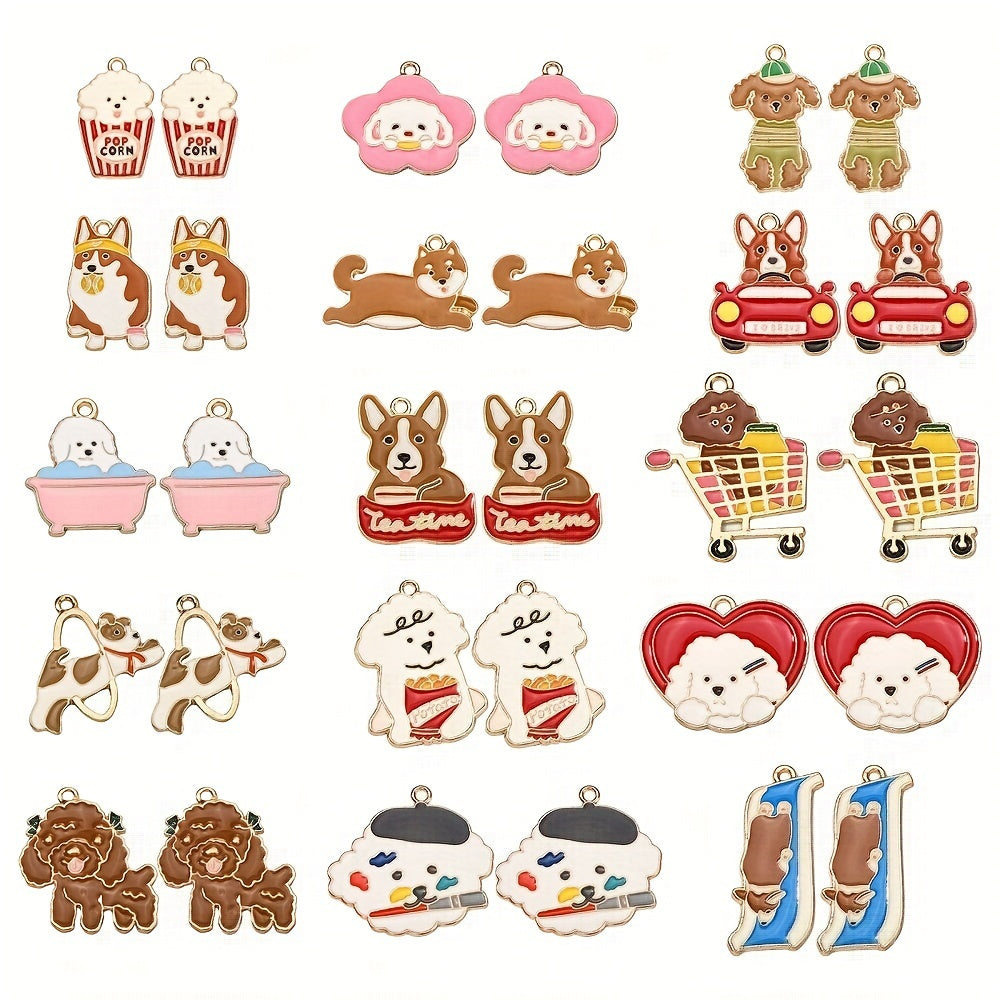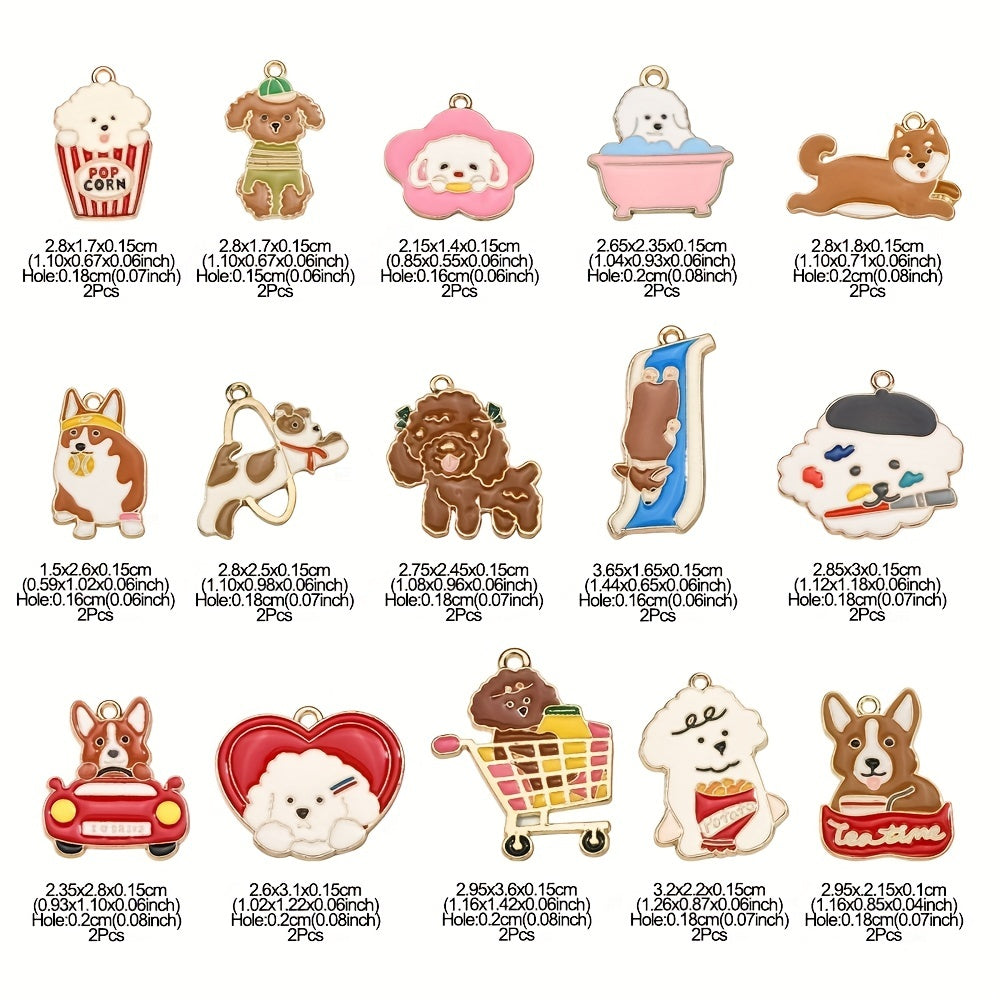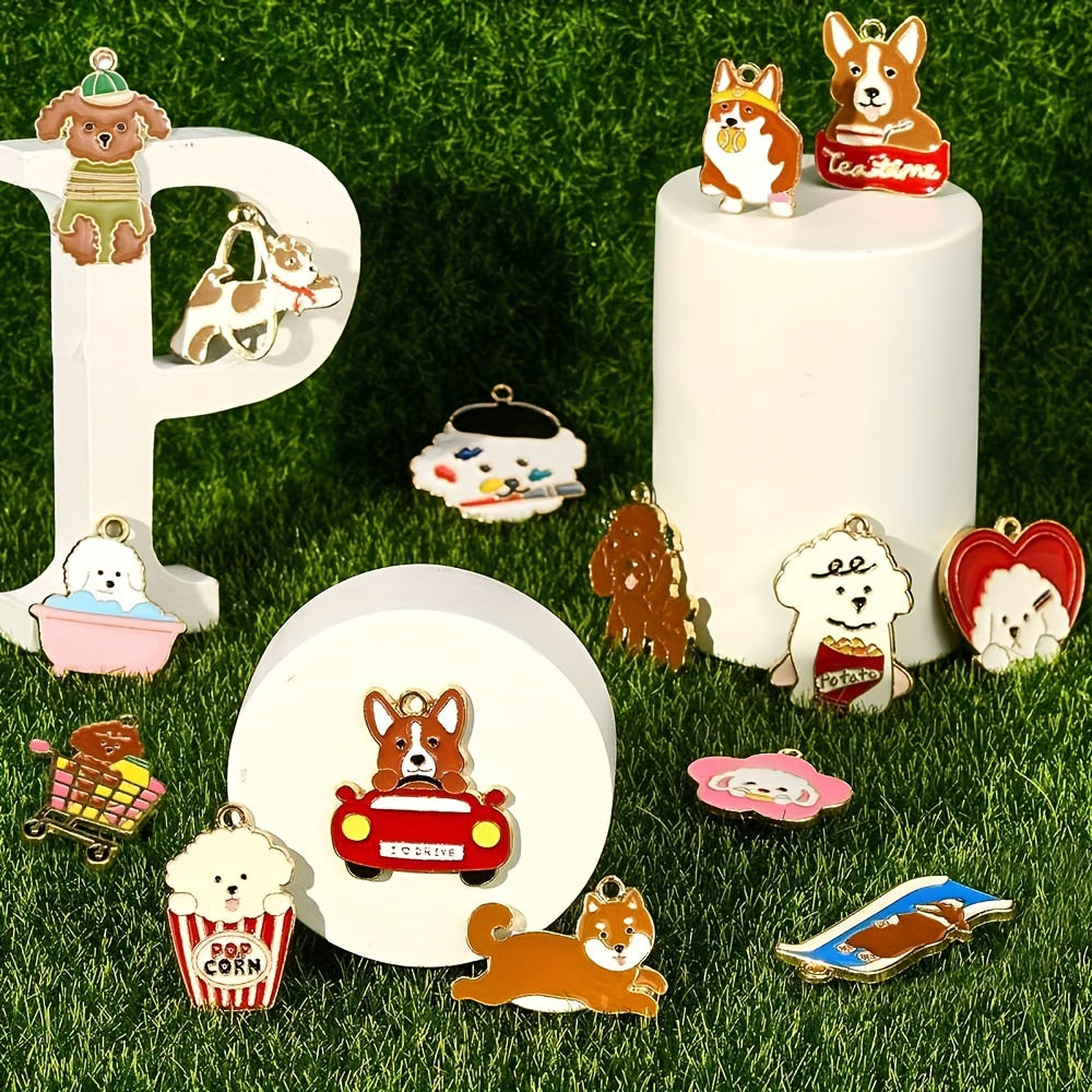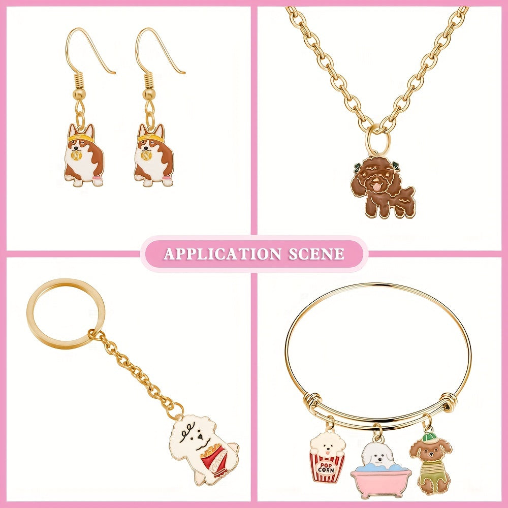 Add a touch of canine charm to your jewelry pieces with these adorable dog dangle pendants. Featuring 15 different styles in golden enamel finish, these pendants are perfect for dog lovers and jewelry makers alike.