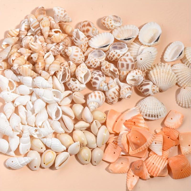 Create unique jewelry pieces or aquarium decorations with this set of 30 mixed hole shell and snail beads. Perfect for necklaces, bracelets, earrings, and crafting projects.