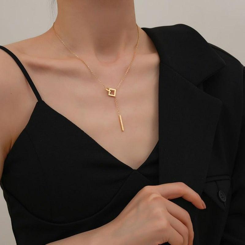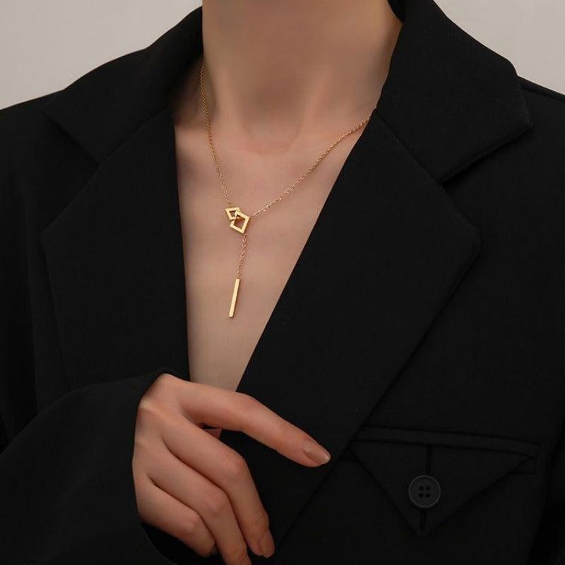 Elegant stainless steel necklace with tassel pendant perfect for women's fashion.