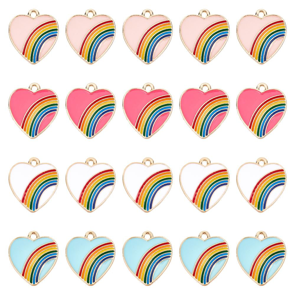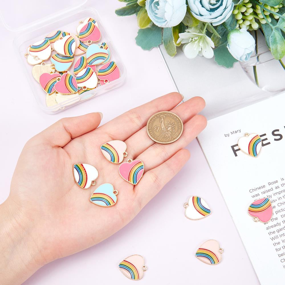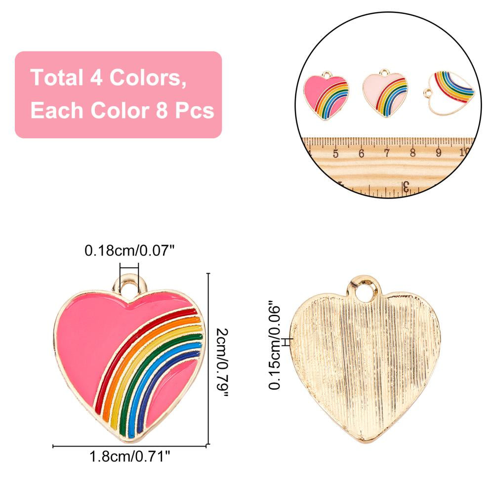 Get creative with these colorful heart-shaped alloy pendants perfect for bracelet or necklace making. Each set includes 32 pieces in 4 different colors. These pendants are cadmium and lead-free, safe for crafting.