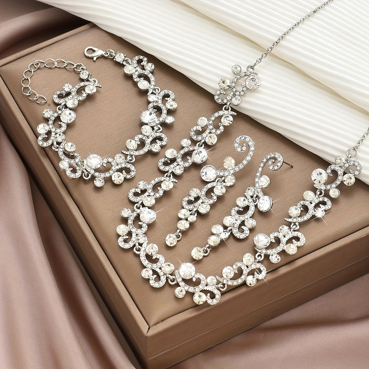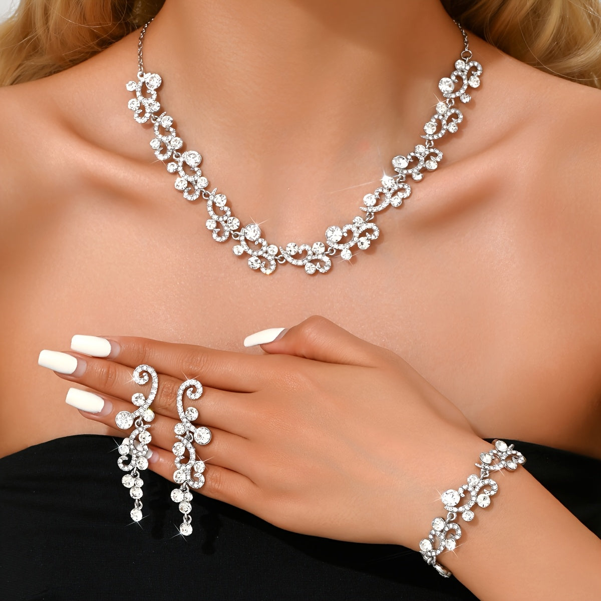 This elegant set includes a necklace, bracelet, and ring, perfect for parties and special occasions. It's a great gift for women who appreciate minimalist style jewelry.