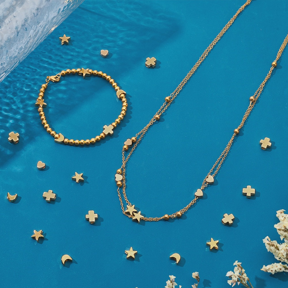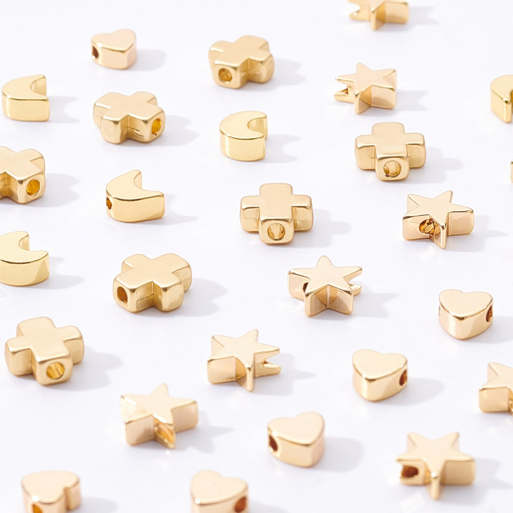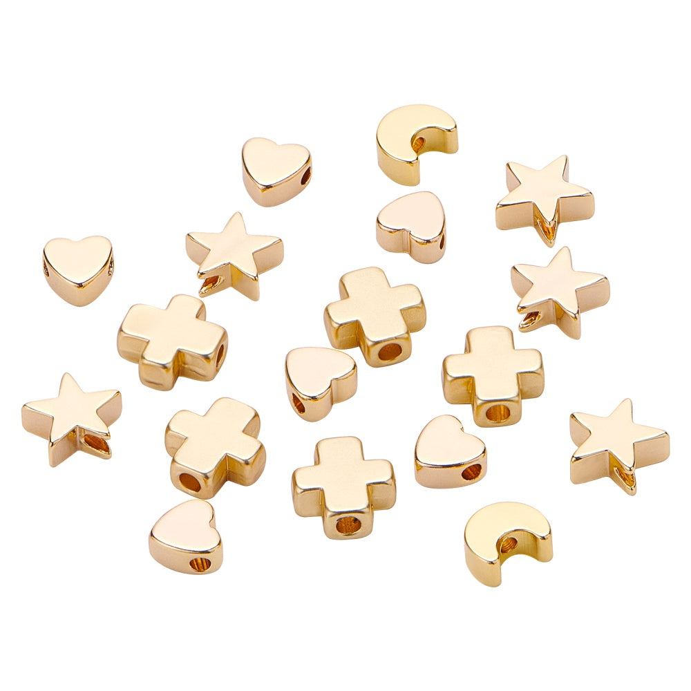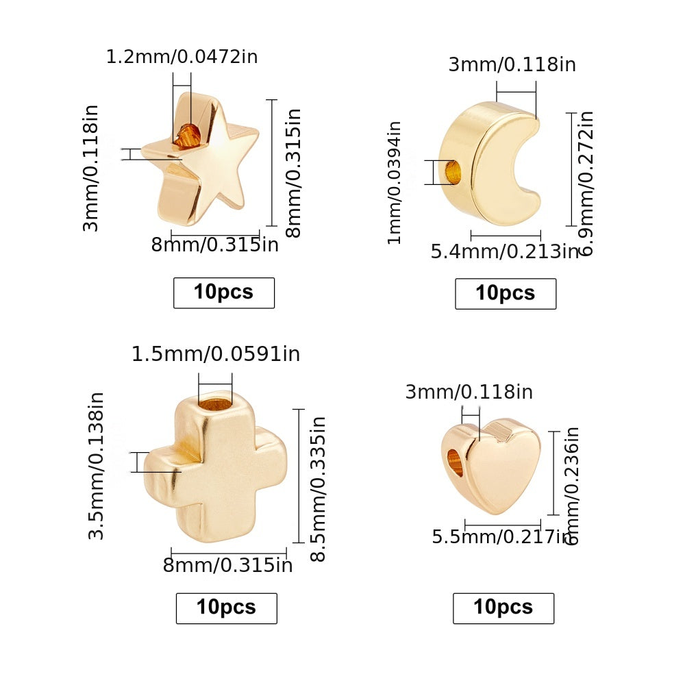 This set includes 40 pieces of 18K golden plated spacer beads in 4 mixed shapes made of brass, perfect for bracelet and necklace DIY jewelry making.