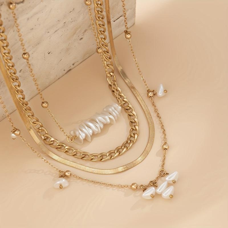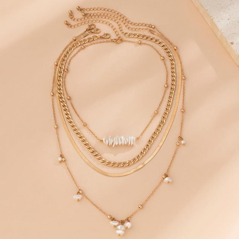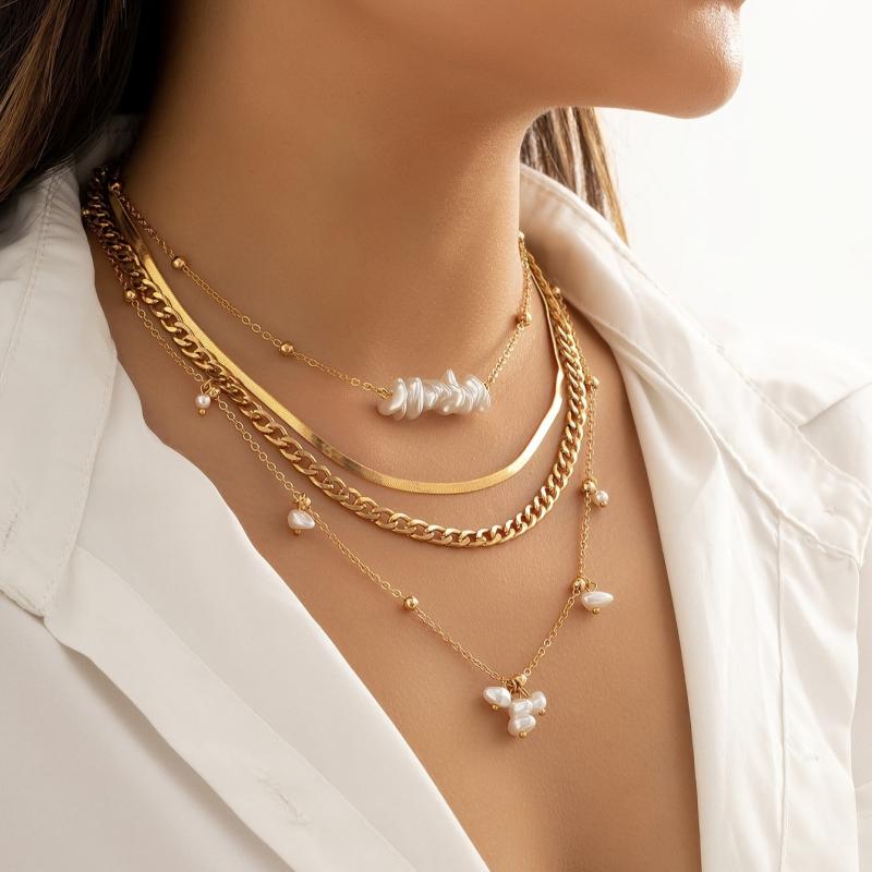 Elevate your style with this set of 4 irregular faux water drop copper bead necklaces. Perfect for adding a touch of elegance to any outfit.