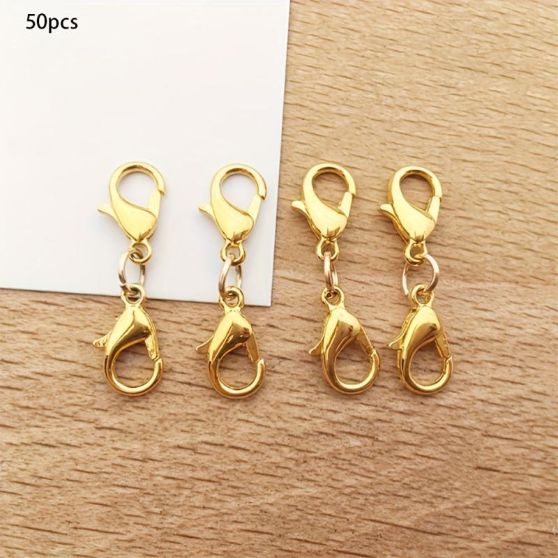 This pack includes 50 pairs of lobster clasps with a golden and silvery finish. These clasps are perfect for jewelry making and crafting projects.