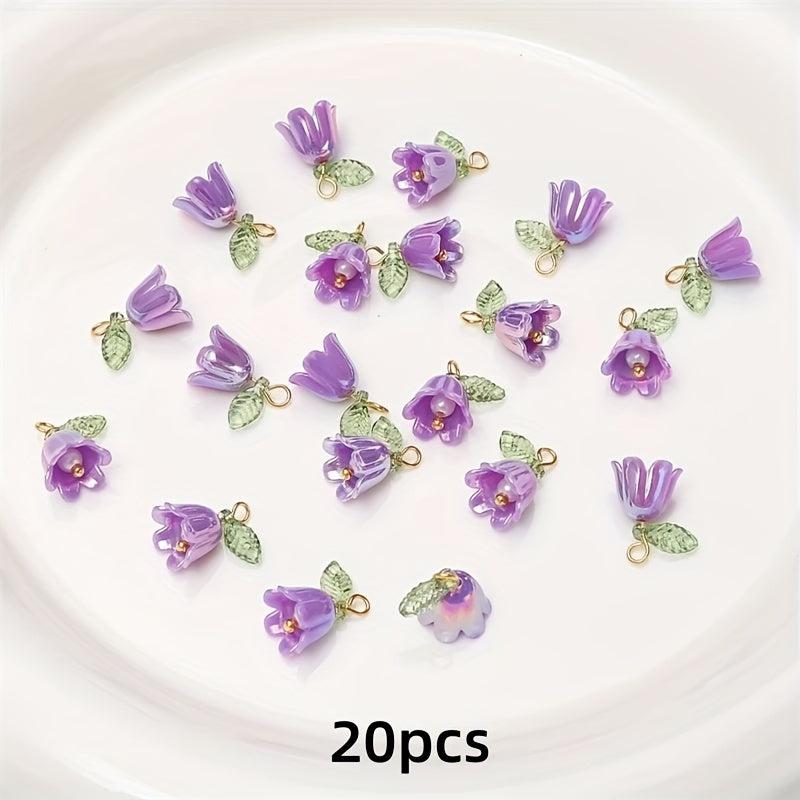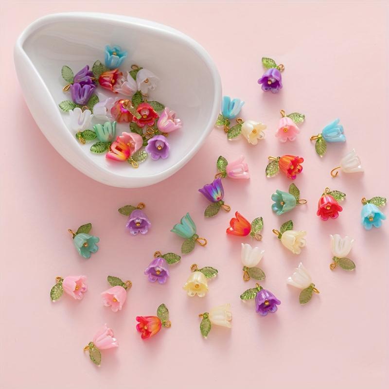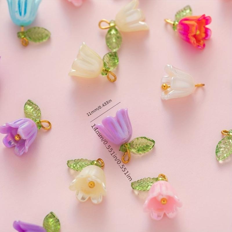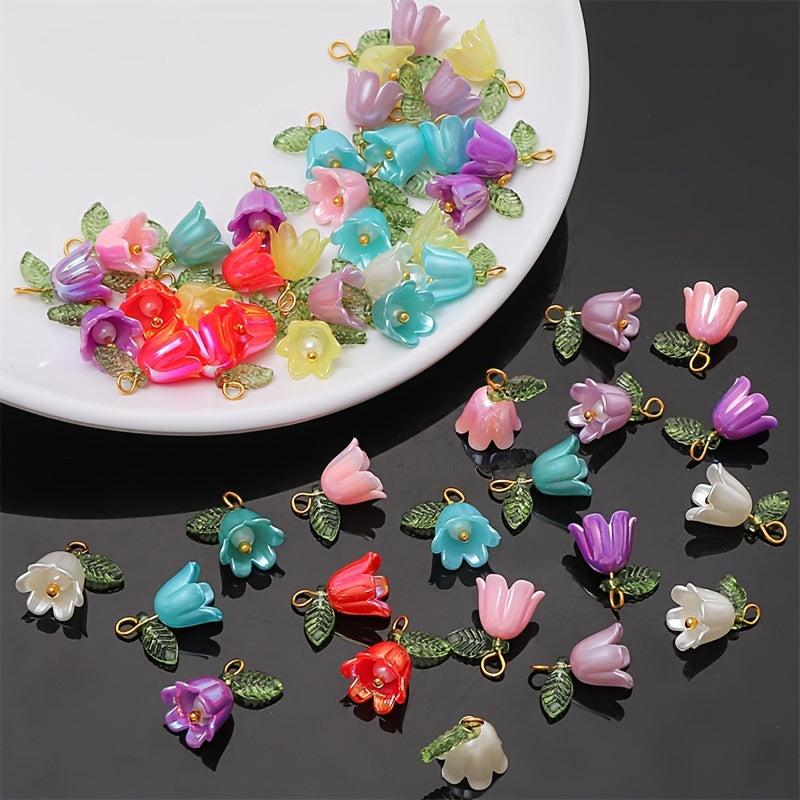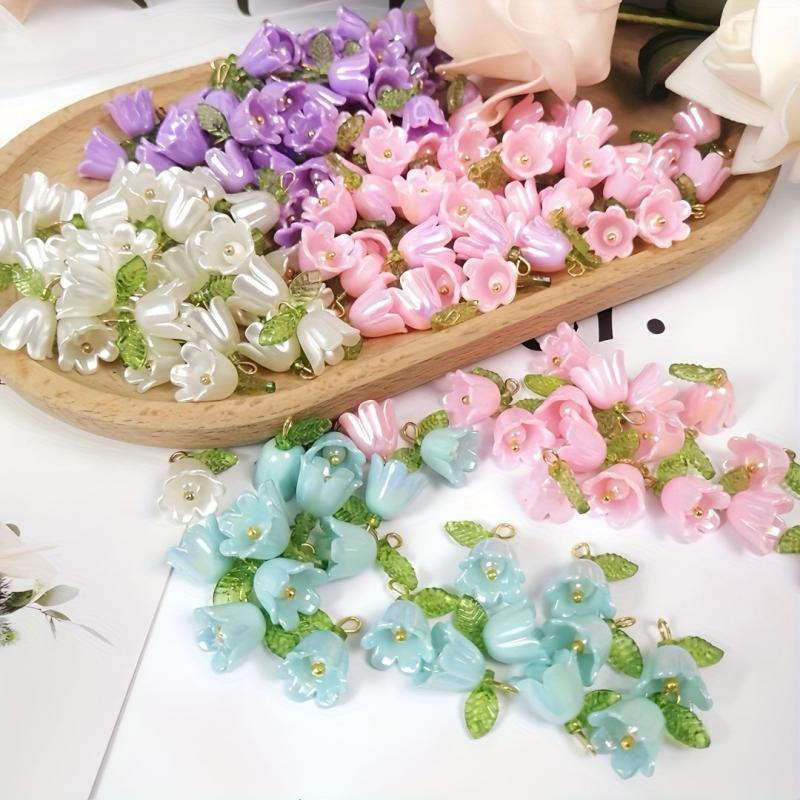 Add a touch of elegance to your jewelry creations with these multicolor acrylic lily of the valley flower charms. Perfect for bracelets, keychains, and necklaces.