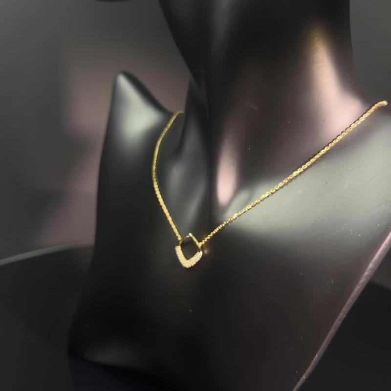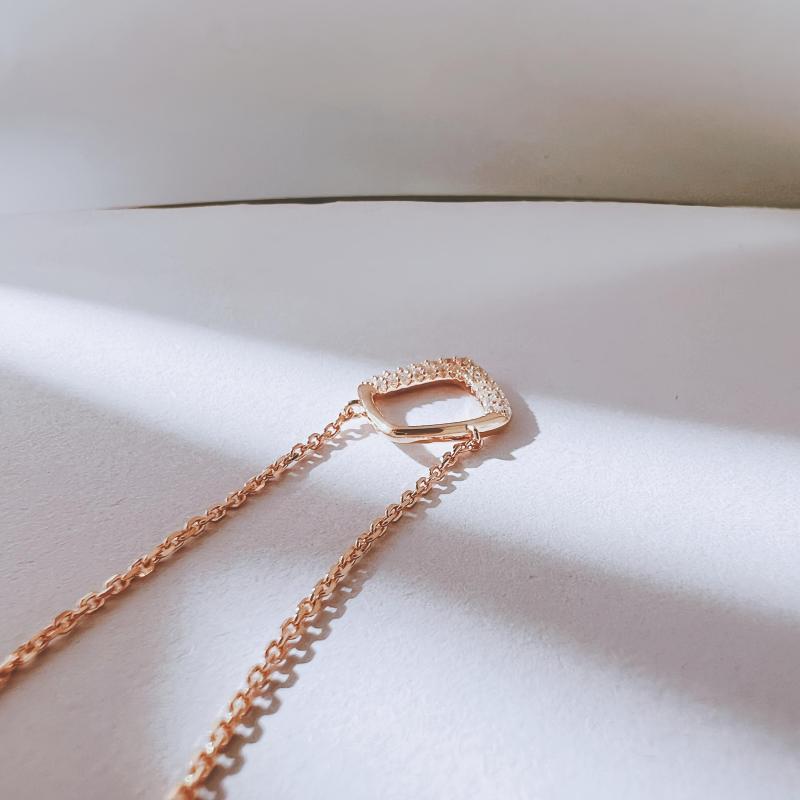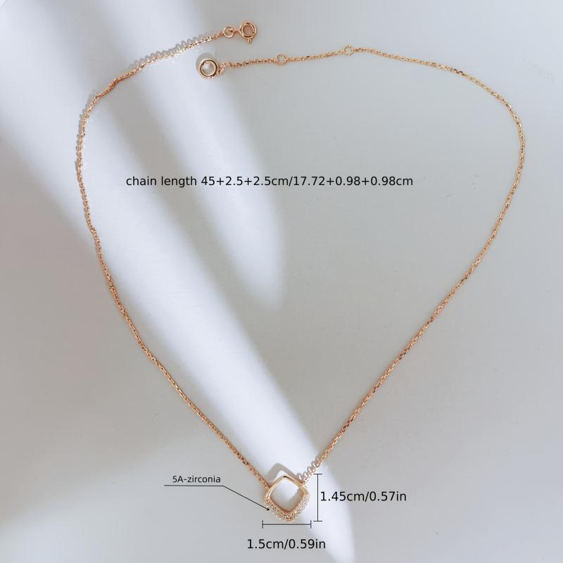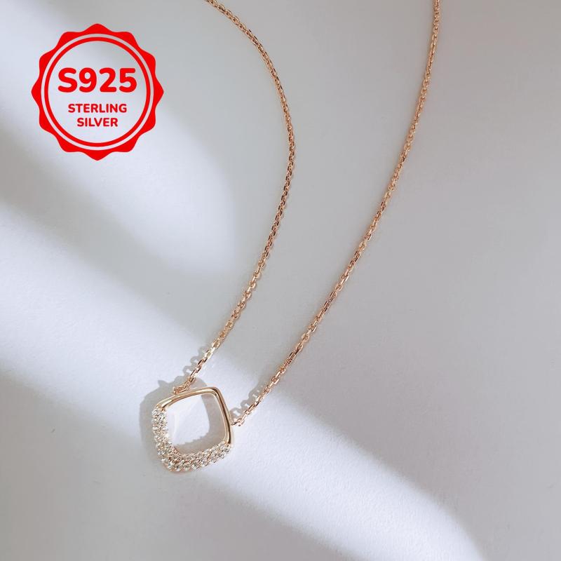 Elegant golden 5A Zirconia encrusted square necklace made of S925 sterling silver, perfect for daily wear and party outfits.