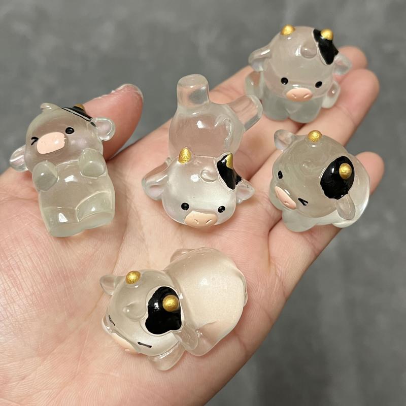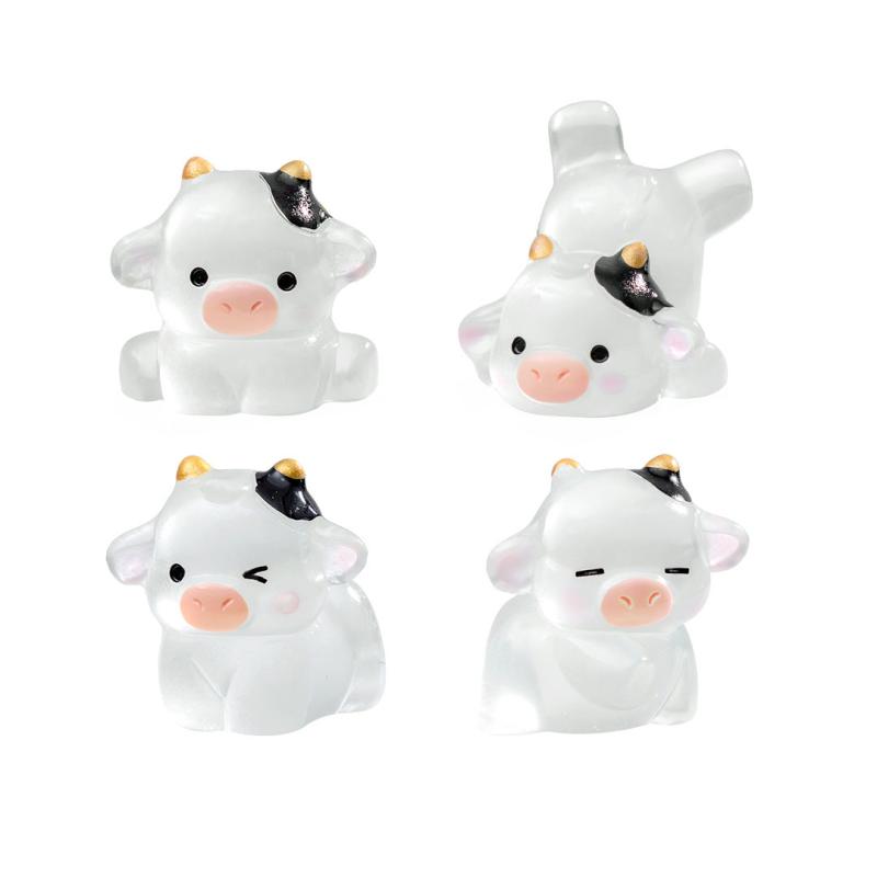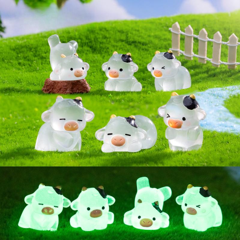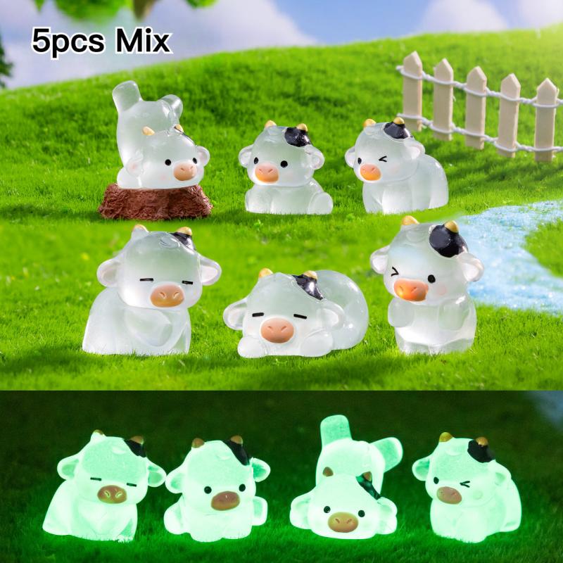 5pcs Glow in the Dark Mini Cows Resin Garden Decor Nighttime Animal Figurines