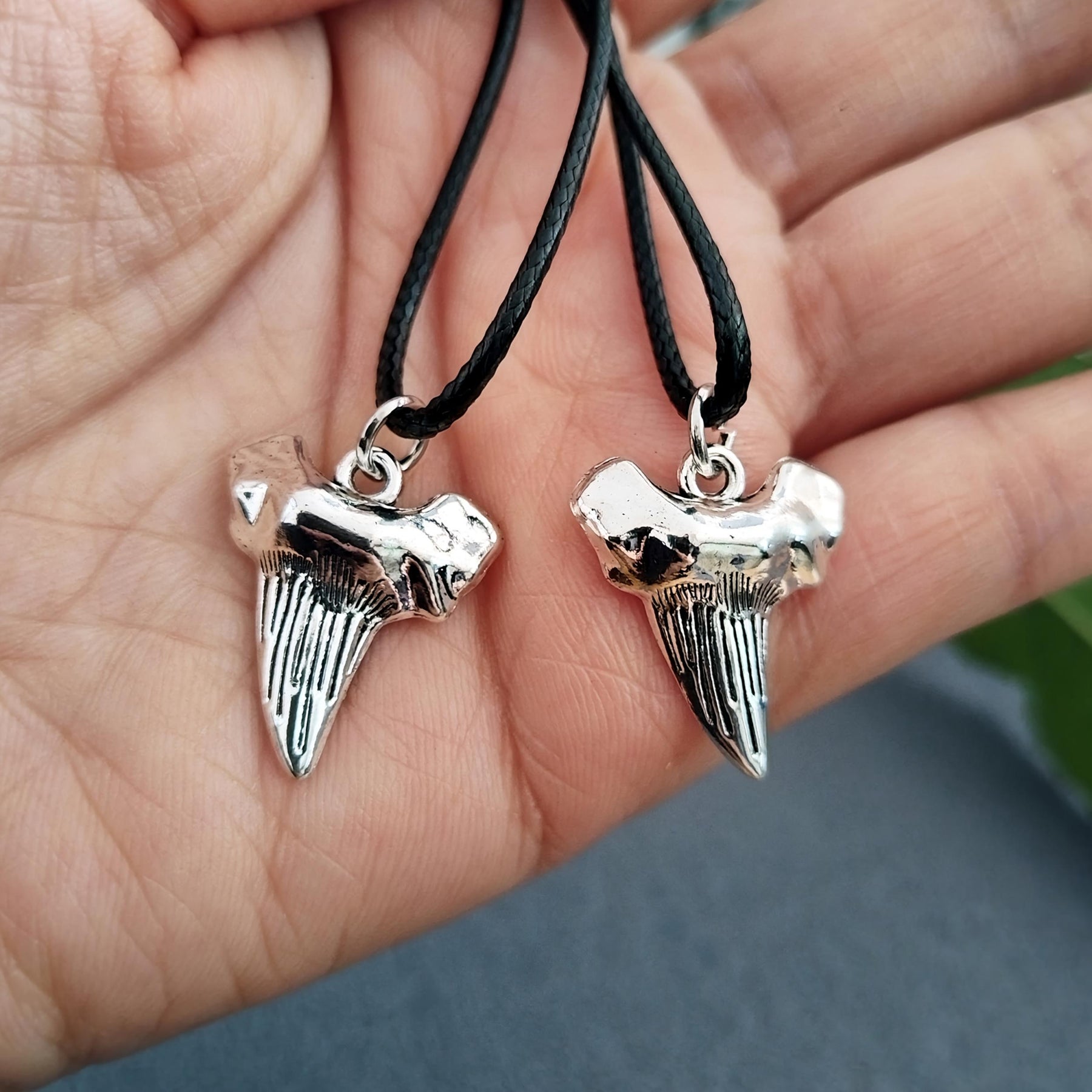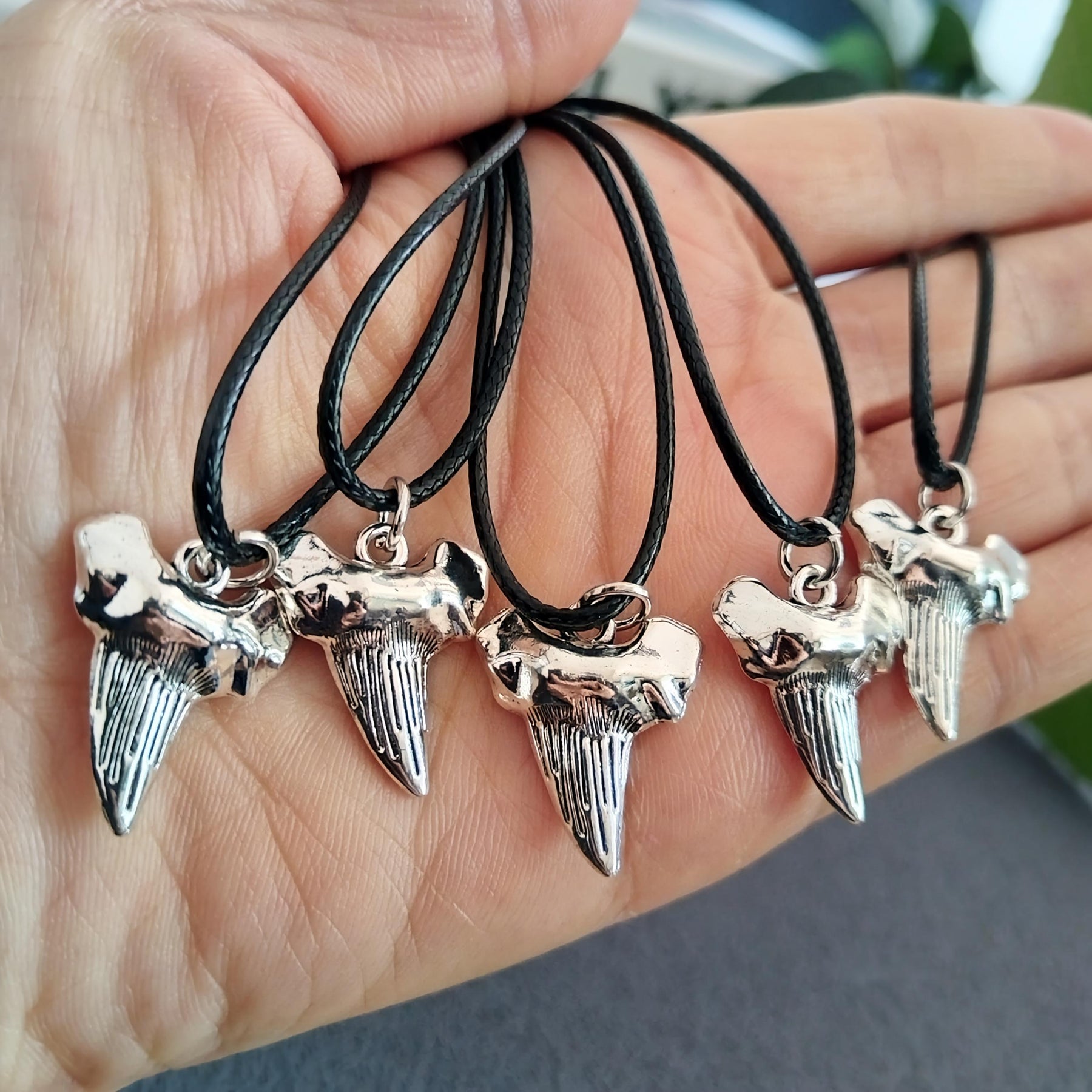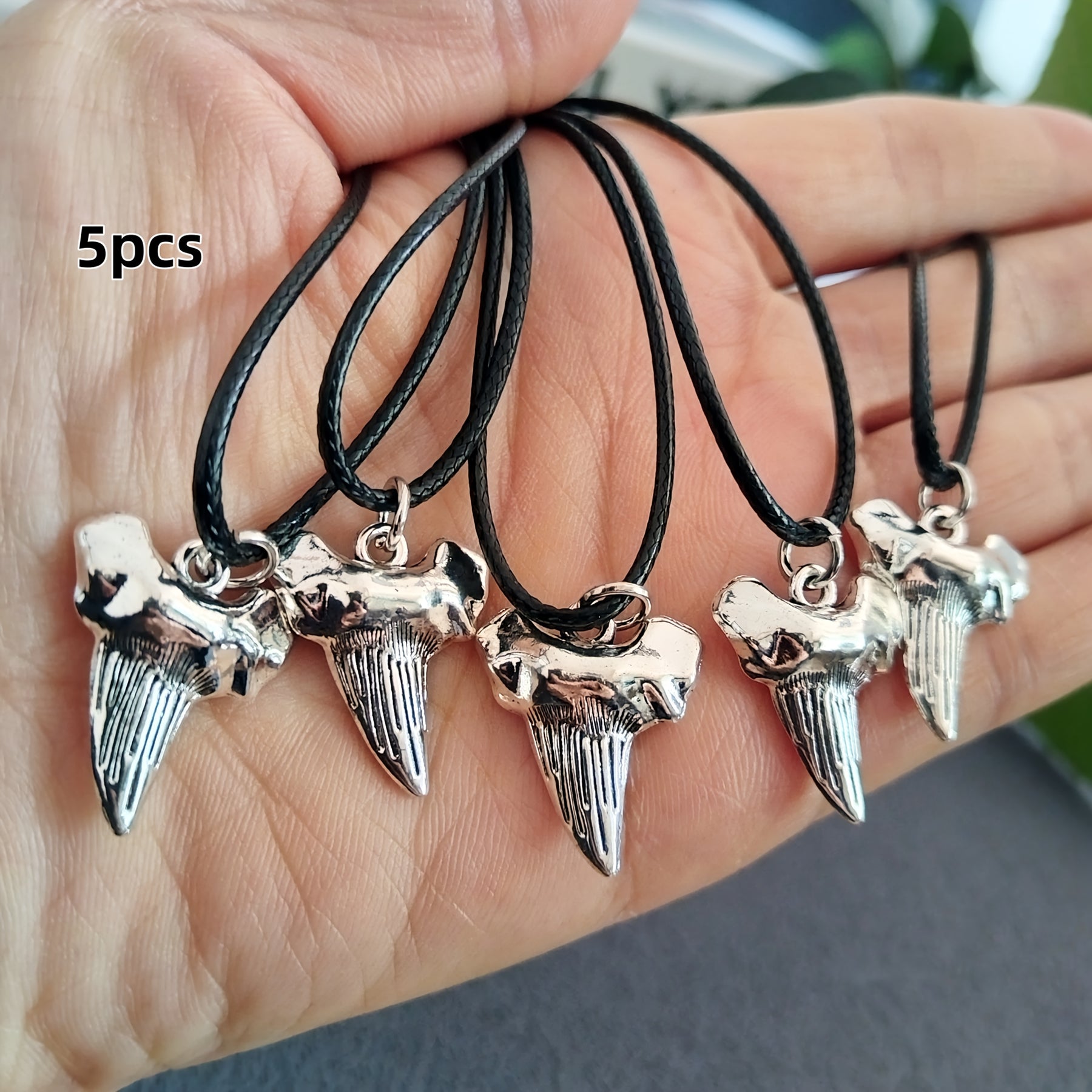 Vintage nautical-inspired necklace set with shark tooth pendants. Made from polyester and leather cords, suitable for daily wear and special occasions.
