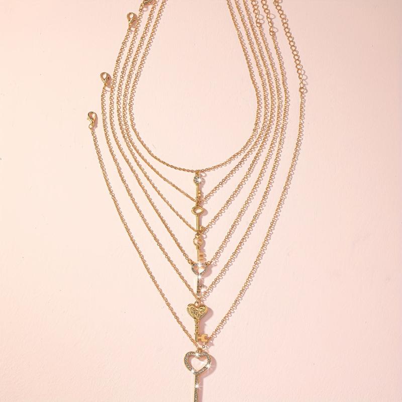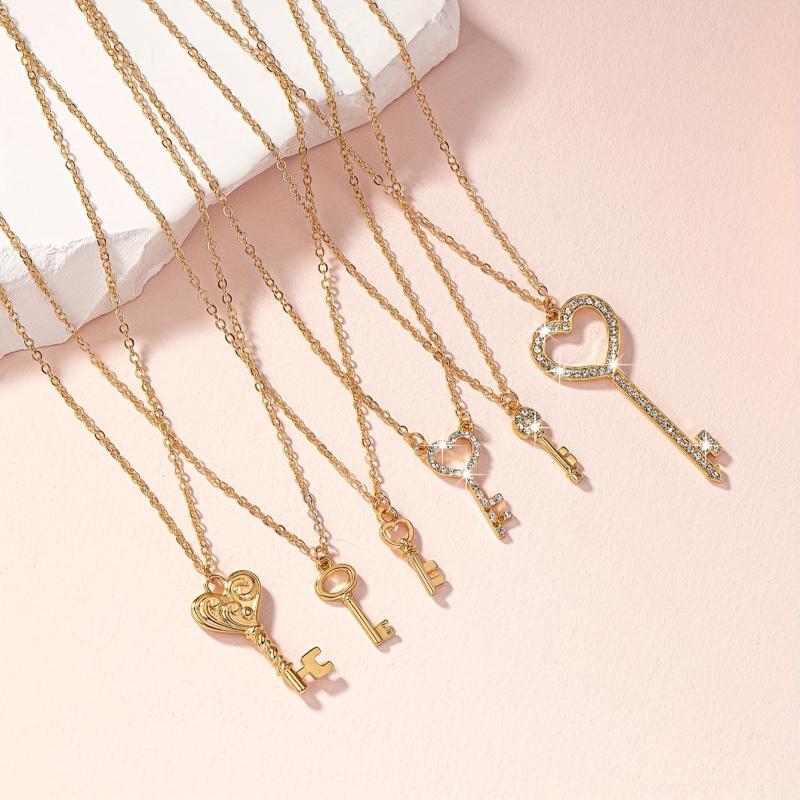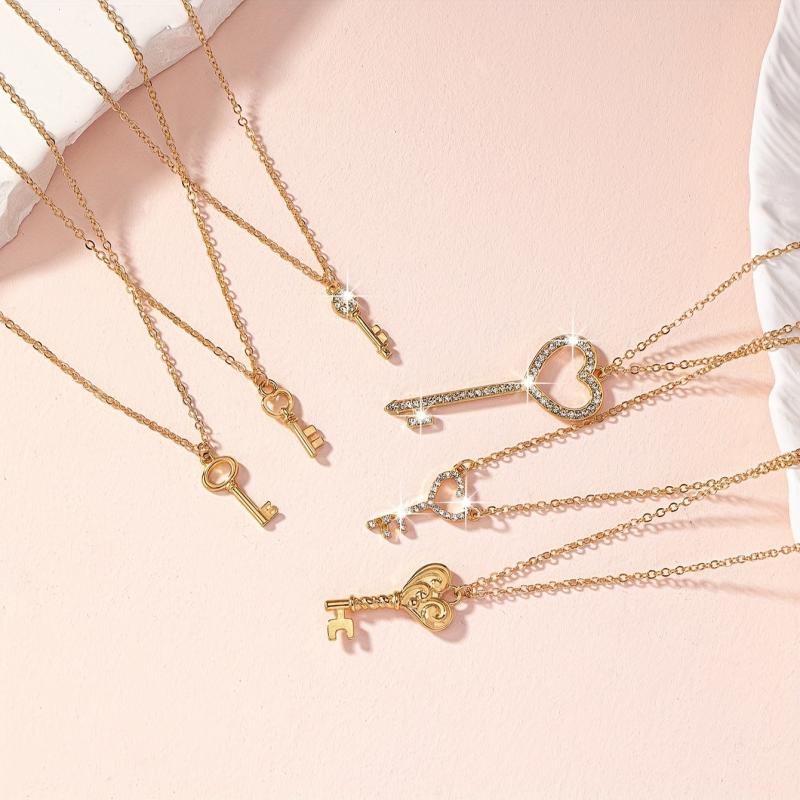 These 6 key-shaped pendant necklaces are adorned with sparkling crystals, perfect for music festivals and casual gatherings. Add a touch of whimsical charm to your outfits!