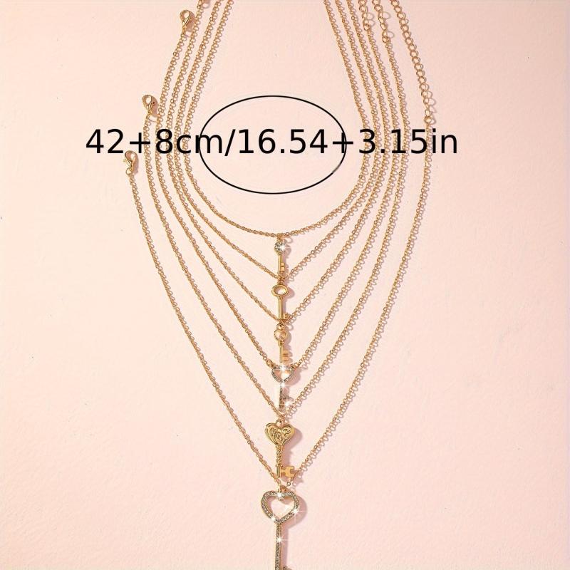 6pcs Key Pendant Necklaces w/ Crystals for Music Festivals & Casual Outfits