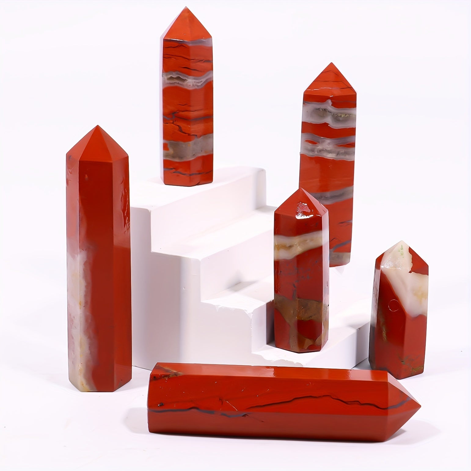 Enhance your energy with this 7 Chakra Red Crystal Wand. It features natural crystal crafted into a 3.94in tower.
