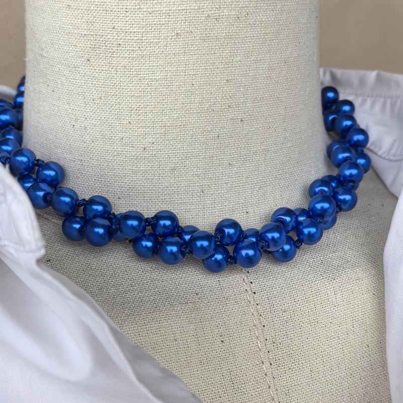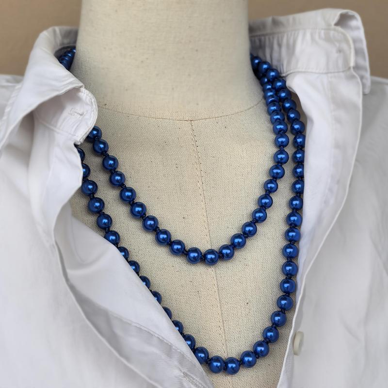 Elegant multi-layered knight beaded chain necklace featuring 8mm glass beads. Perfect for September birthdays.
