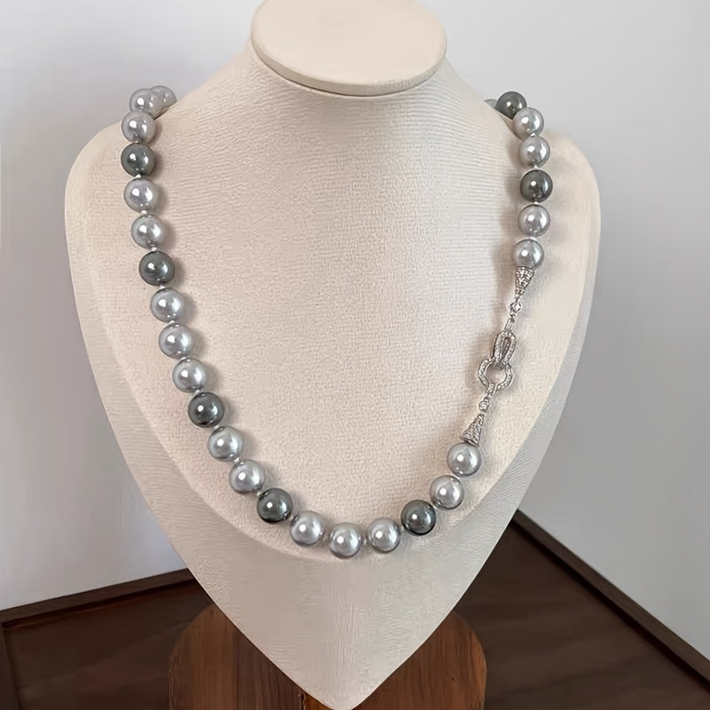 Elevate your look with this 8mm gray mixed pearl necklace. Perfect for daily wear or as a gift on Valentine's Day, this high-end sweater chain adds a touch of elegance to any outfit.