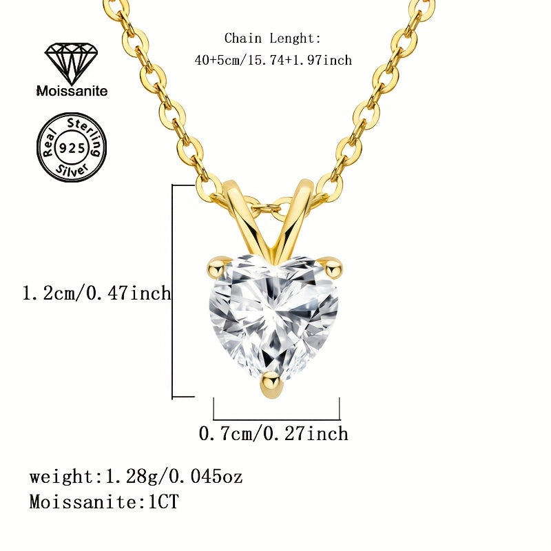 Add a touch of elegance to your outfit with this stunning 925 silver pendant necklace featuring a 1 carat moissanite stone. Perfect for everyday wear or special occasions.
