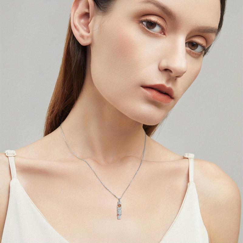 This elegant urn necklace is made of 925 sterling silver, featuring a bar pendant with a delicate rose flower design. It serves as a beautiful cremation jewelry keepsake to hold ashes of your loved one.