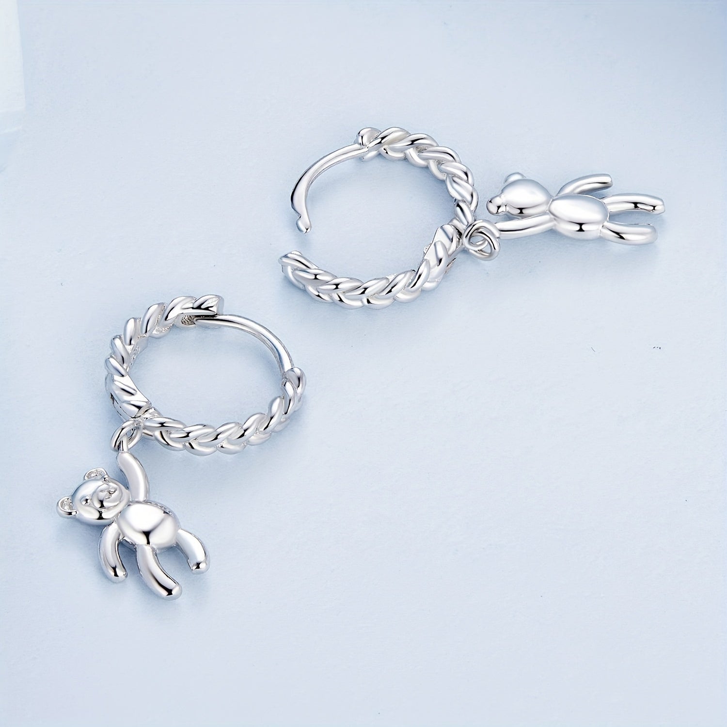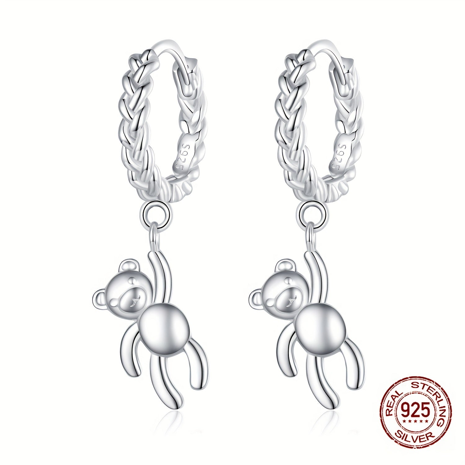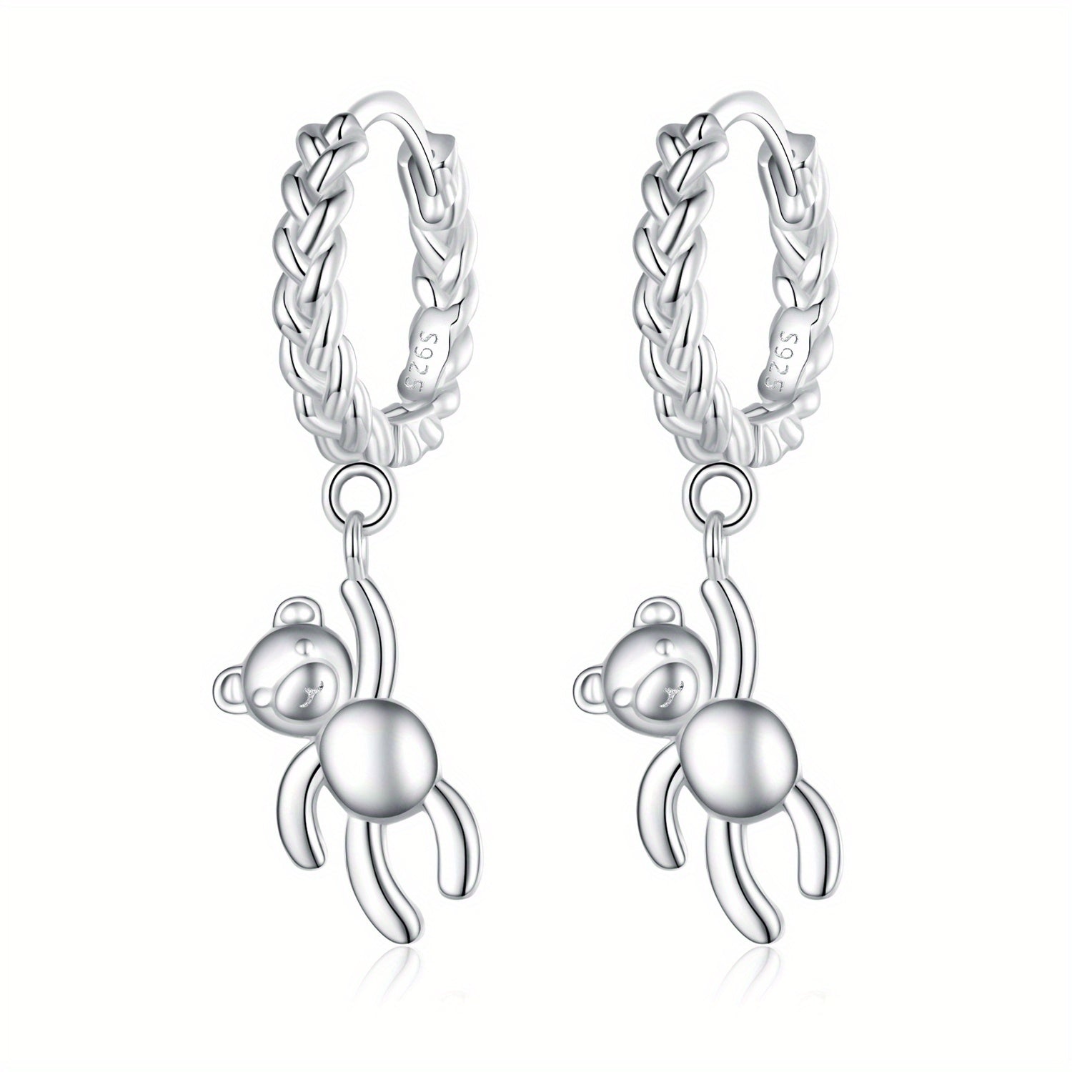 925 Silver Bear Hoop Earrings Japanese Style Gift for Women Girls