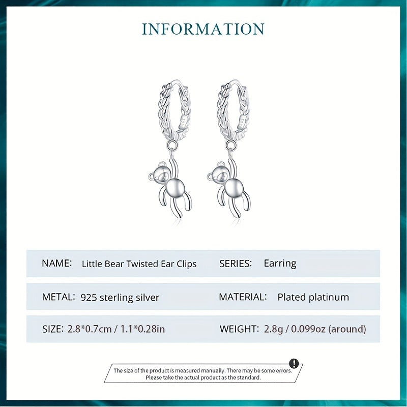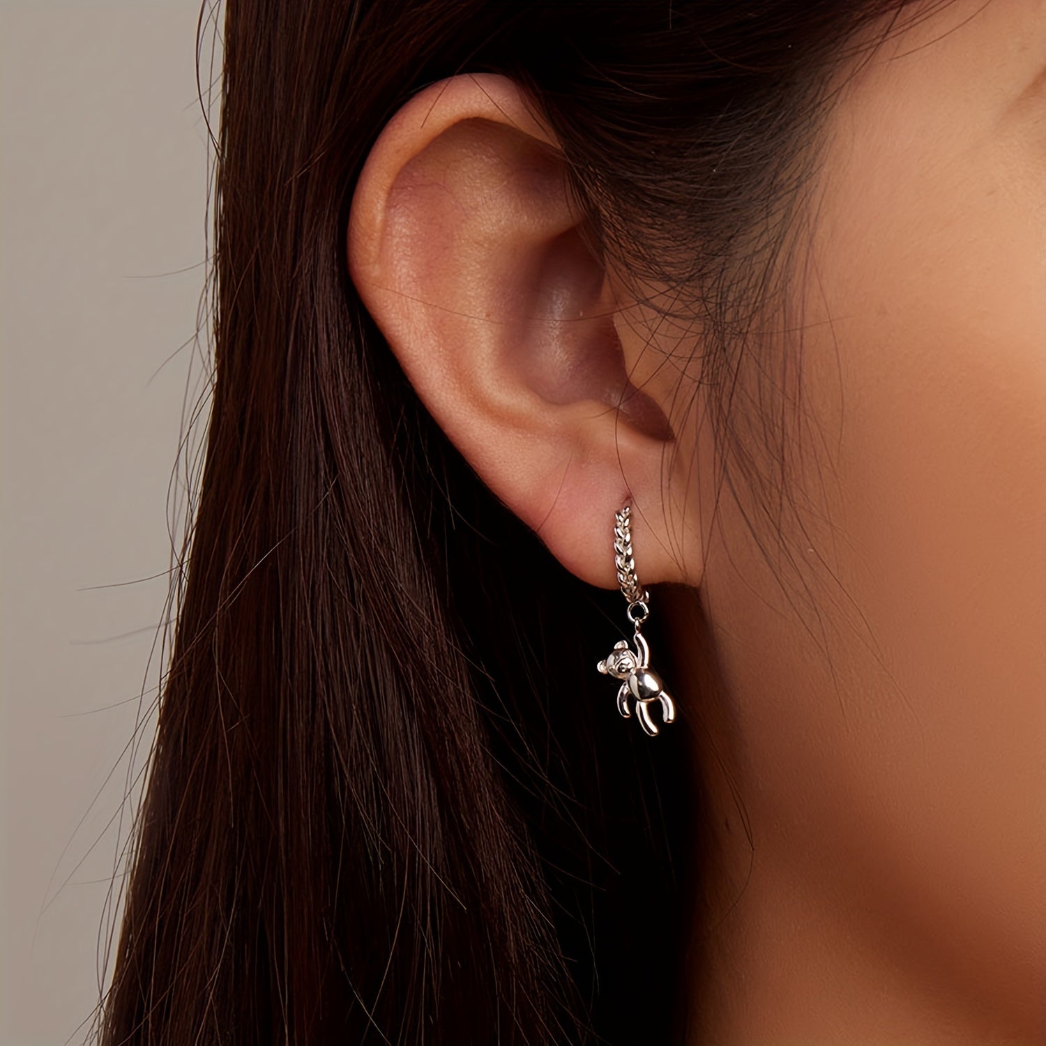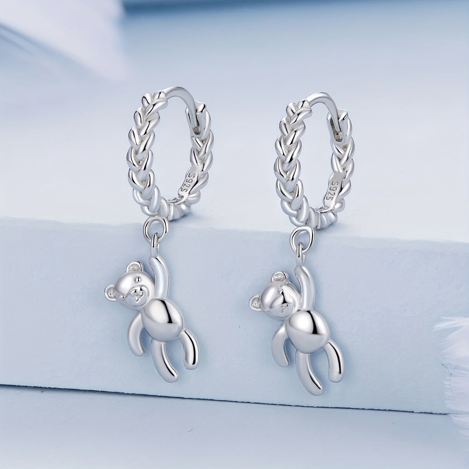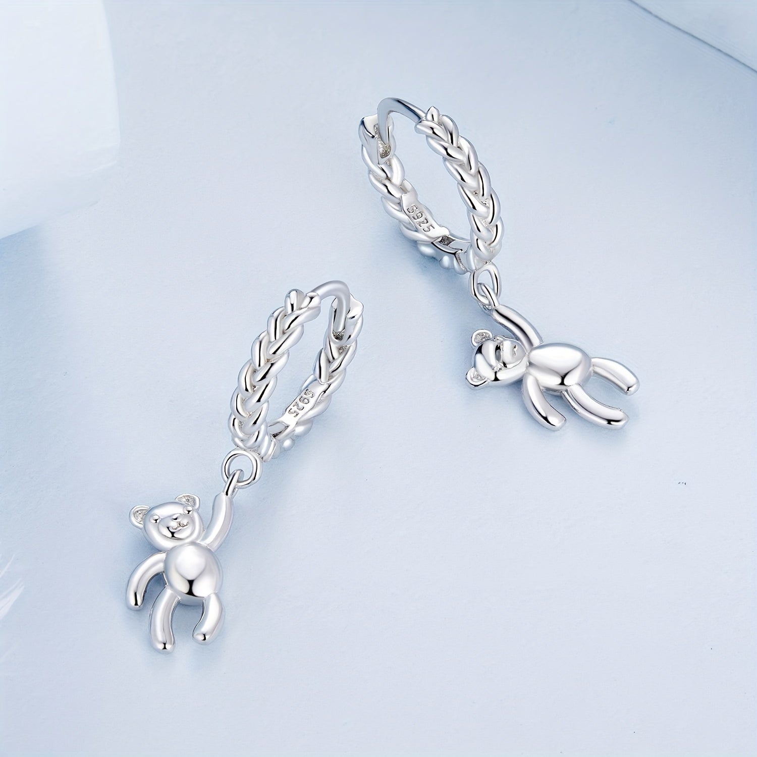 925 Silver Bear Hoop Earrings Japanese Style Gift for Women Girls