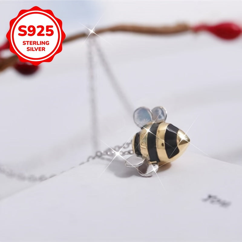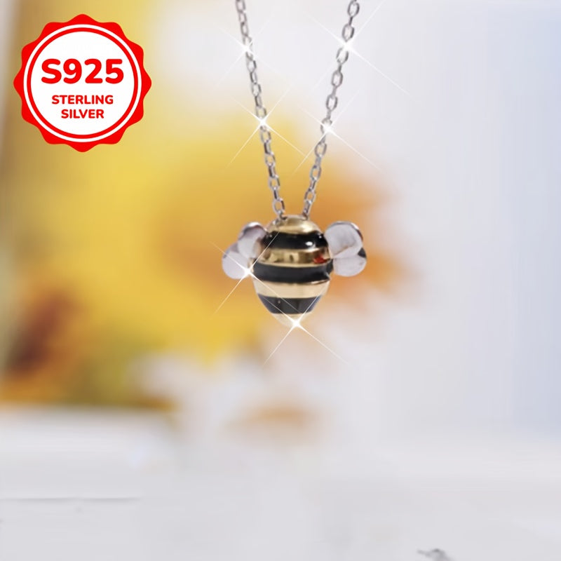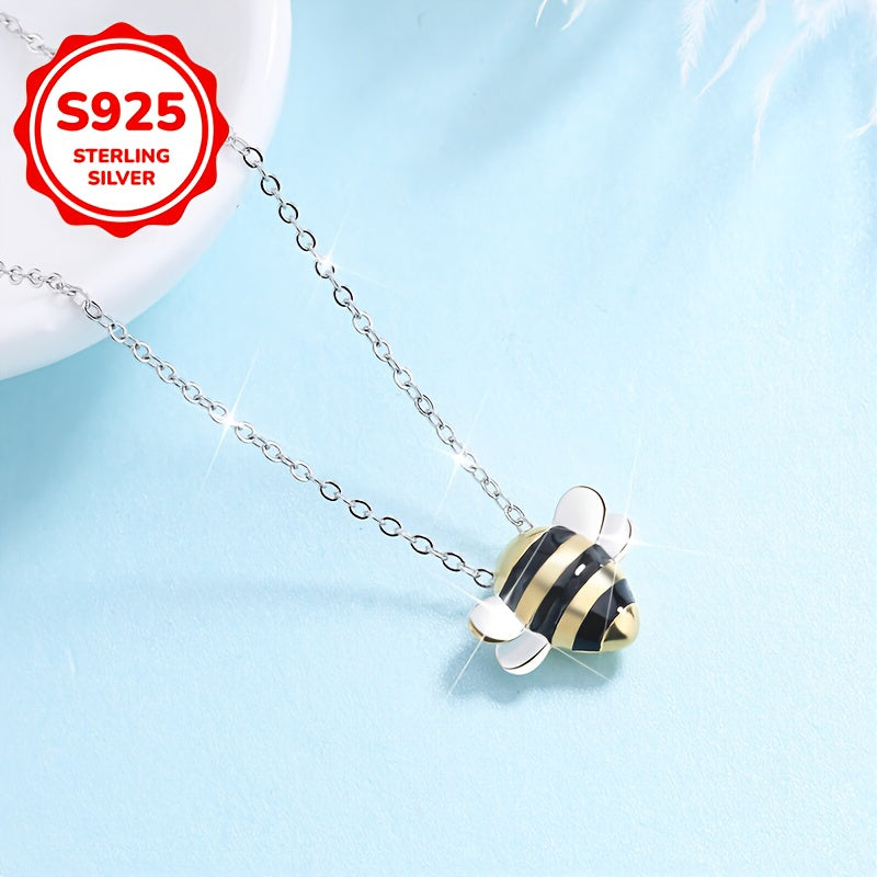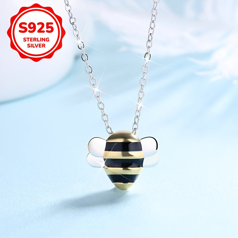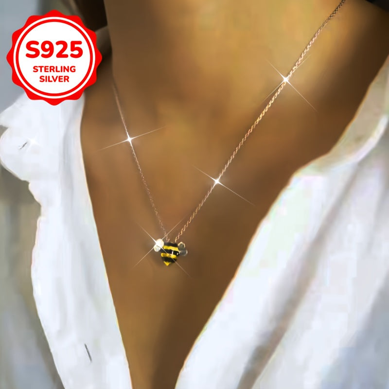 This 925 Sterling Silver Bee Necklace features a hypoallergenic platinum plating and delicate bee pendant with floral accents. It makes a perfect gift for couples or friends.