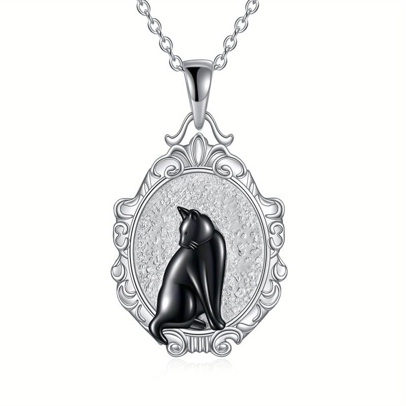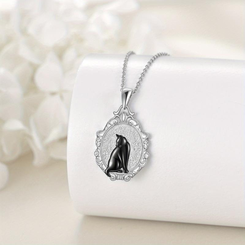 925 Silver Cat Pendant Antique Cat Jewelry for Women