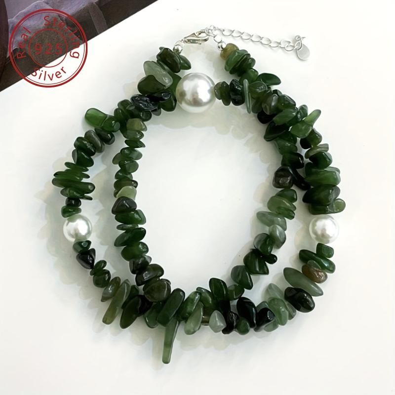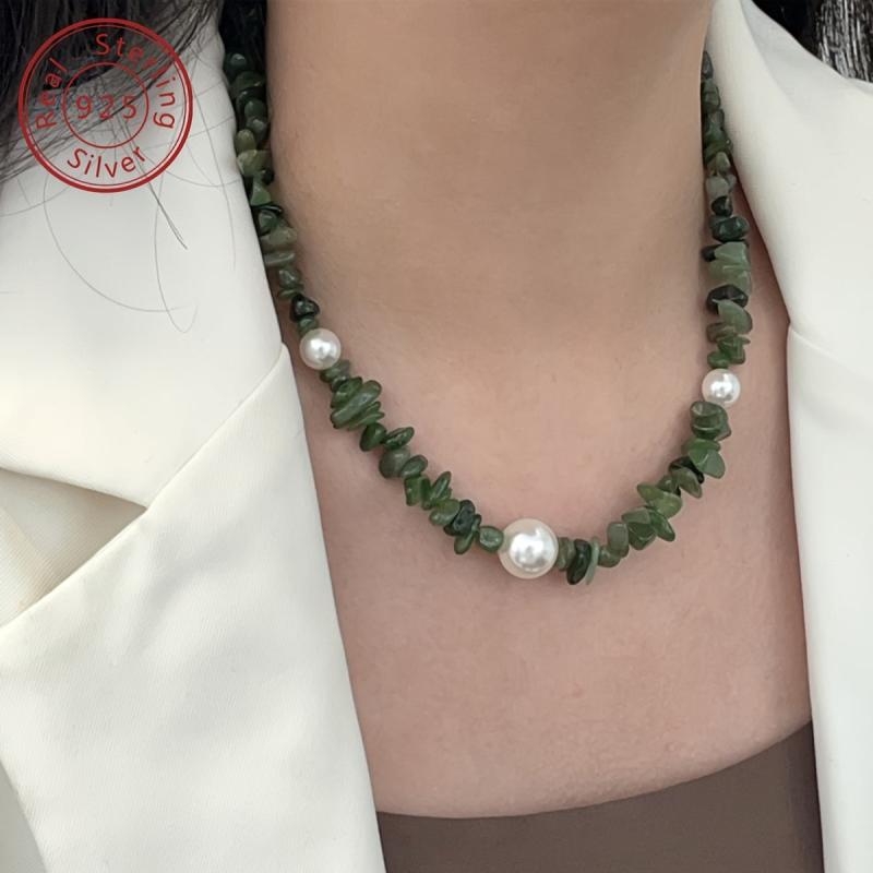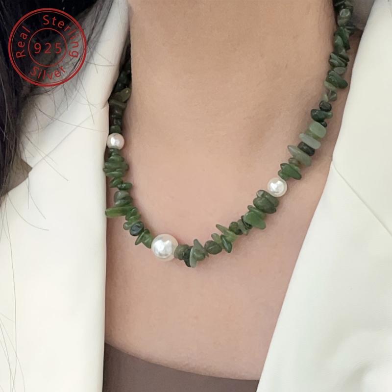 Handcrafted choker necklace made of 925 sterling silver featuring natural stone beads and freshwater pearls. Ideal for daily wear and perfect for gift giving, especially for June birthdays.