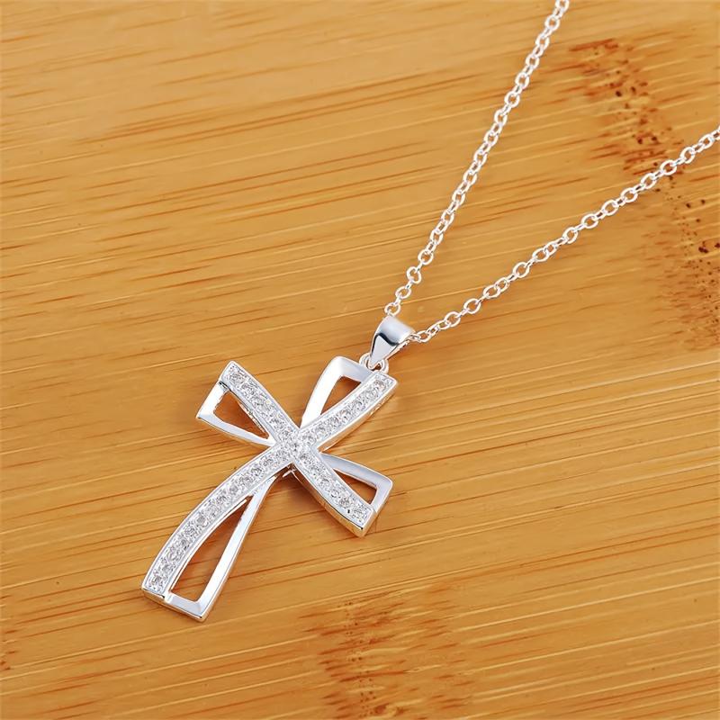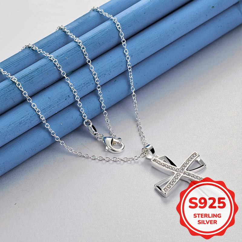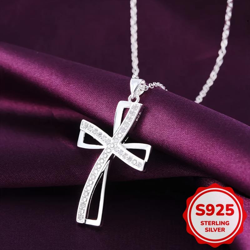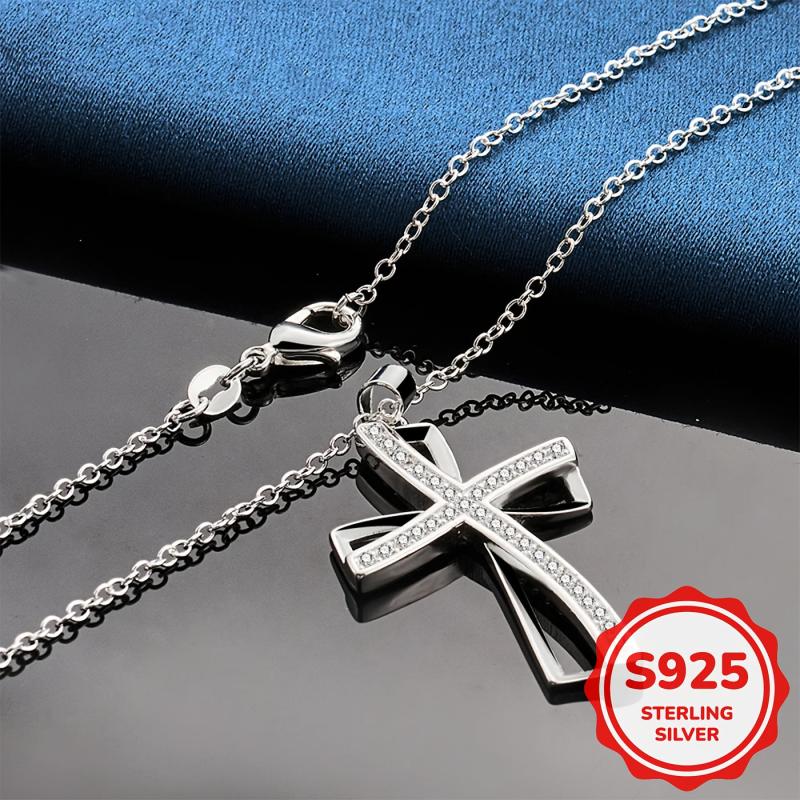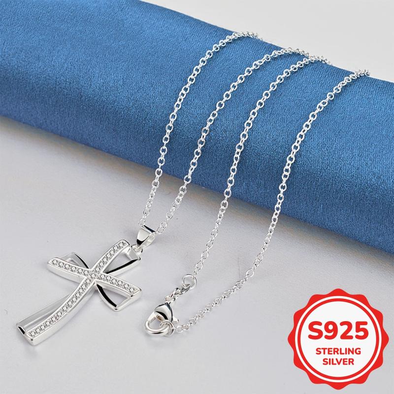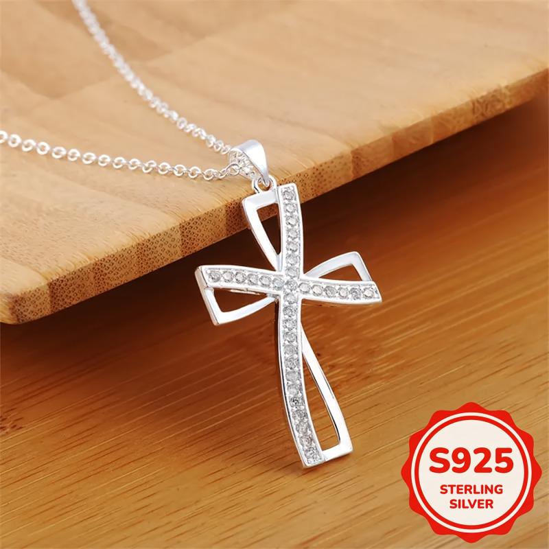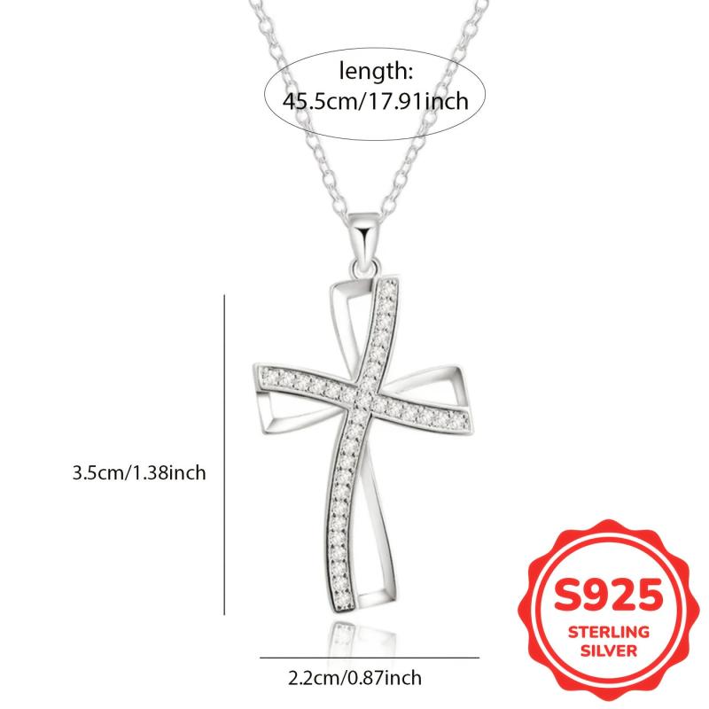 This 925 sterling silver pendant necklace features a double cross design with a sparkling twisted style. It is ideal for daily wear and is lightweight at 4.7g. The twisted cross pendant adds a unique touch to your jewelry collection.