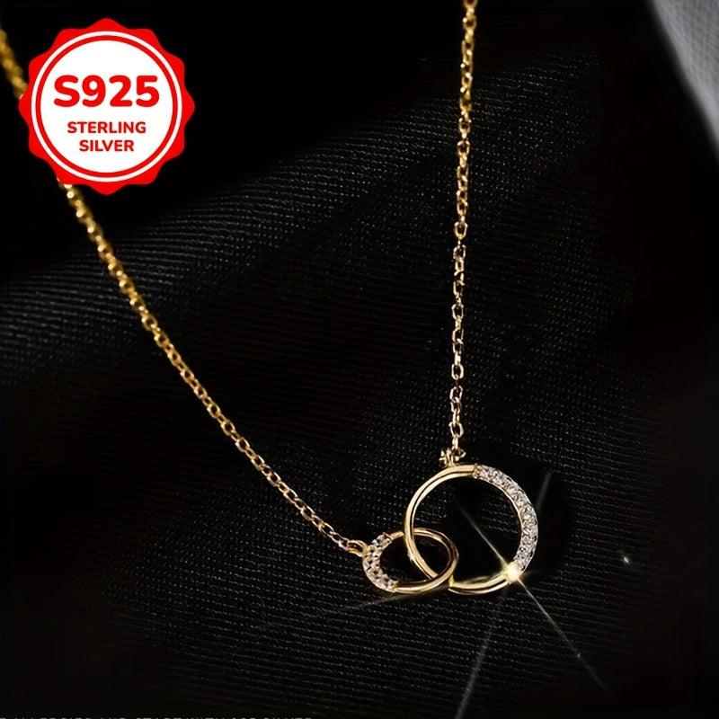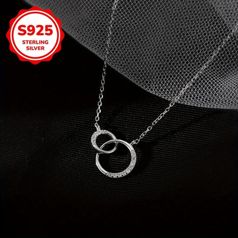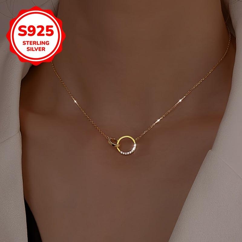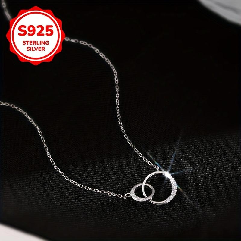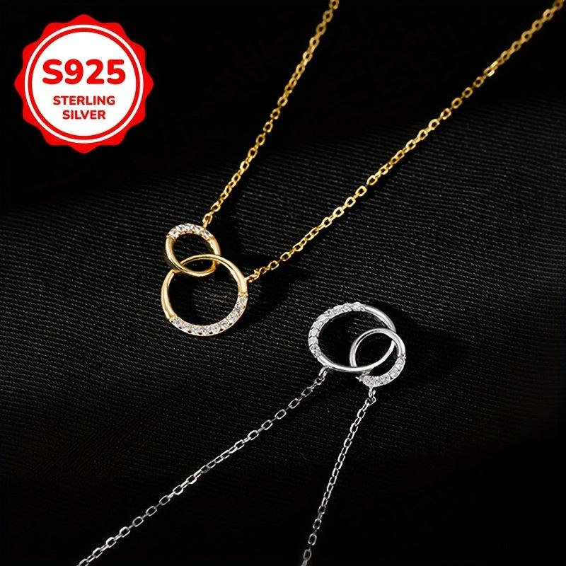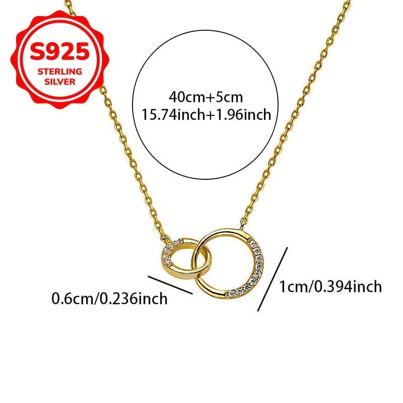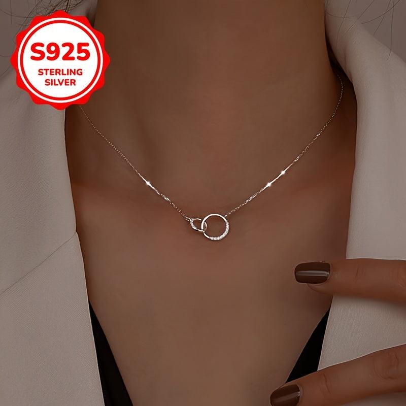 925 Silver Double Hoop Necklace Minimalist Clavicle Chain