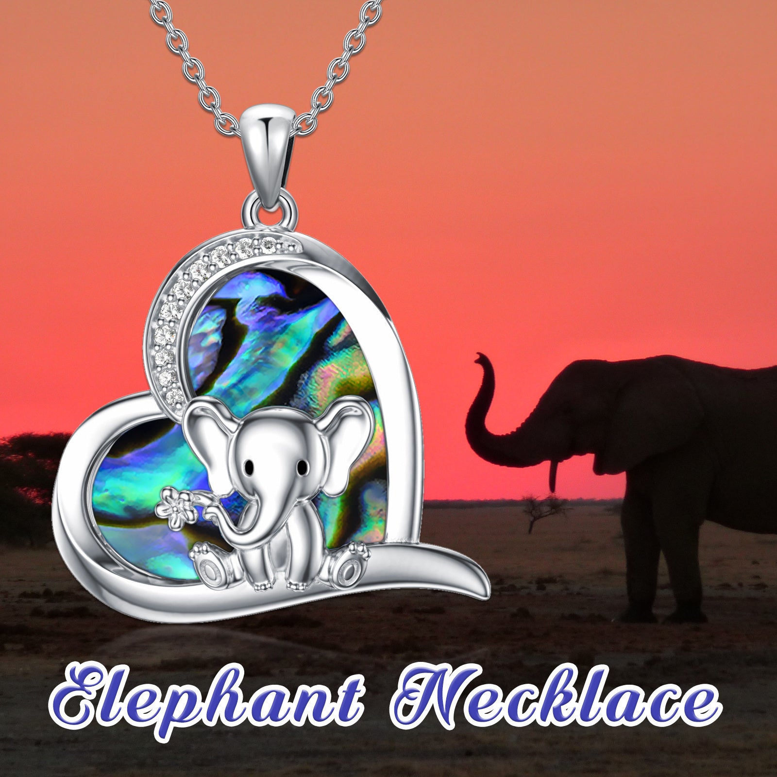 925 Silver Elephant Heart Pendant Necklace for Women