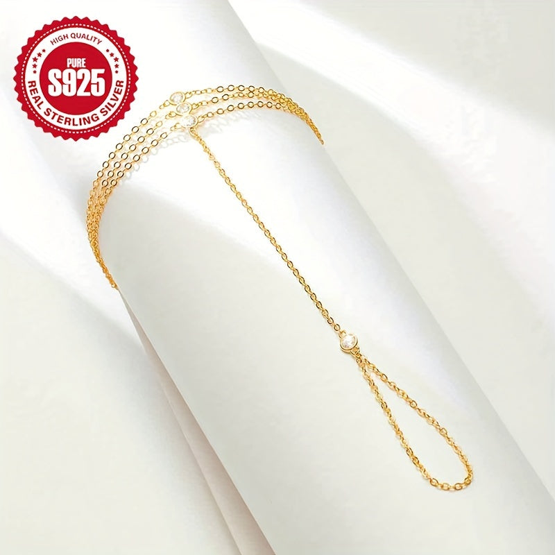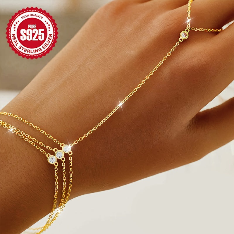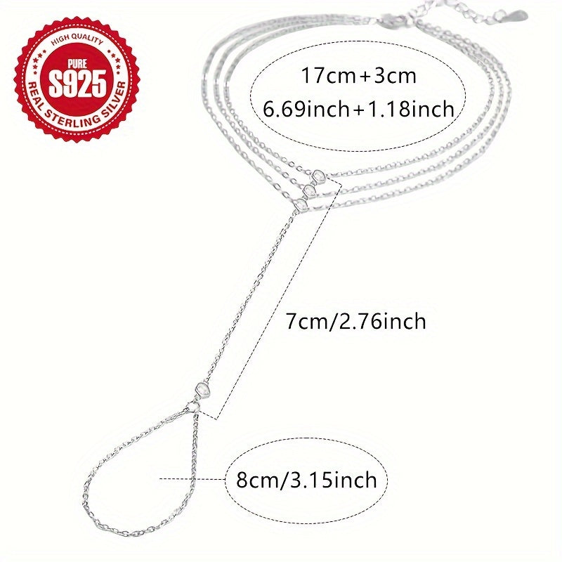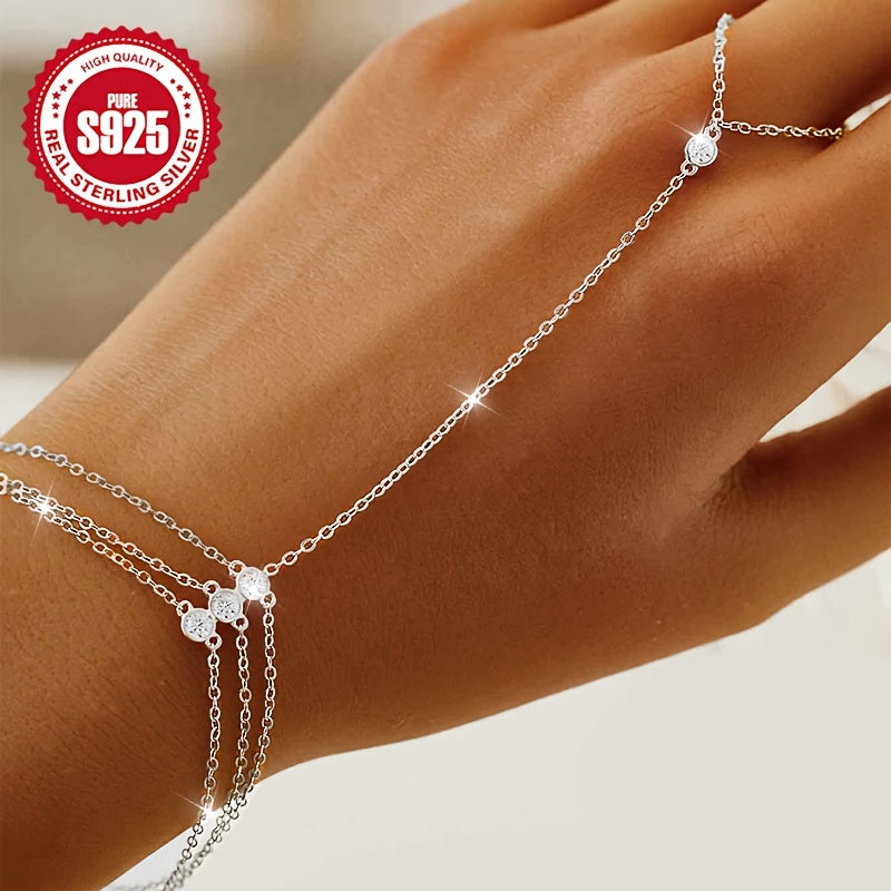 Elevate your style with this stunning 925 silver finger chain featuring synthetic cubic zirconia. Perfect for weddings, banquets, Halloween parties, or as a gift for your girlfriend.