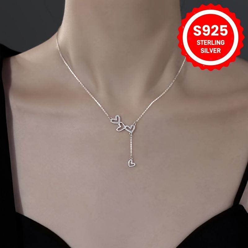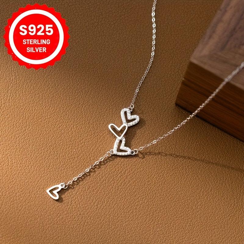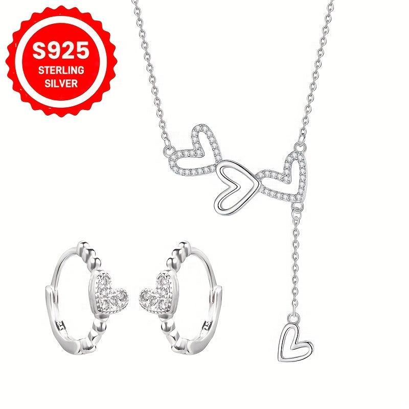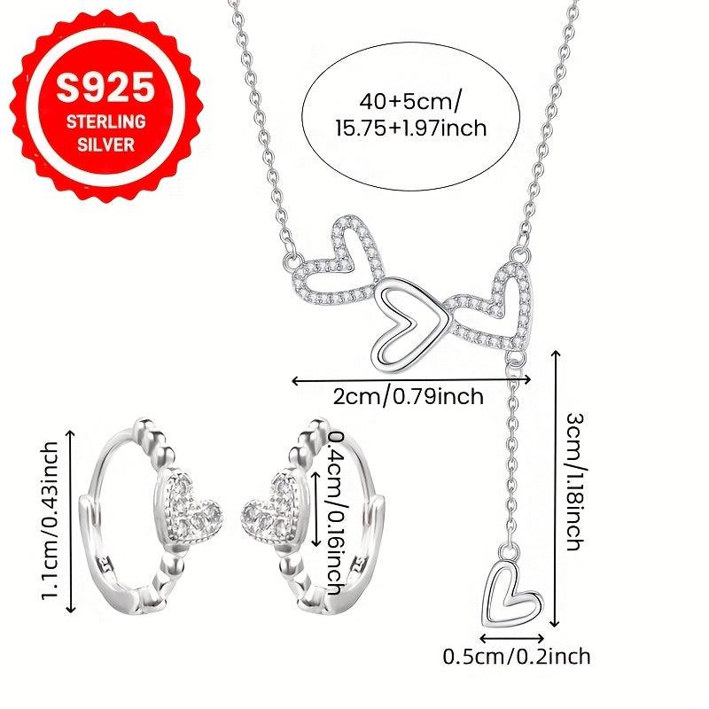 925 Silver Heart Shaped Y Necklace & Earrings Set Zirconia Jewelry