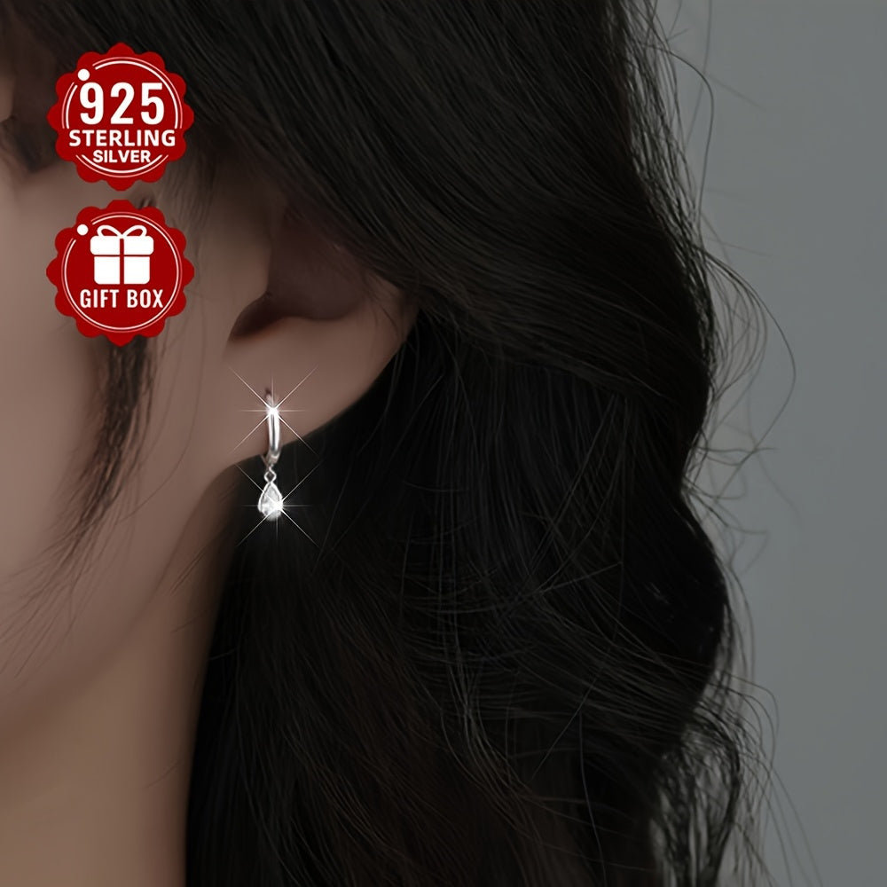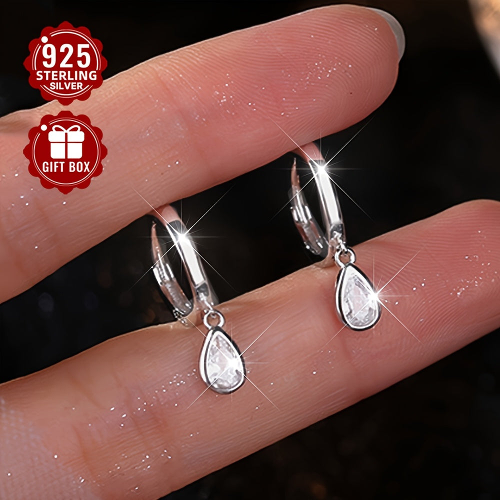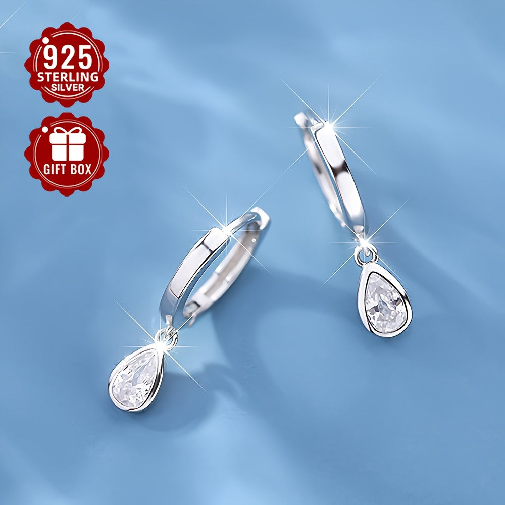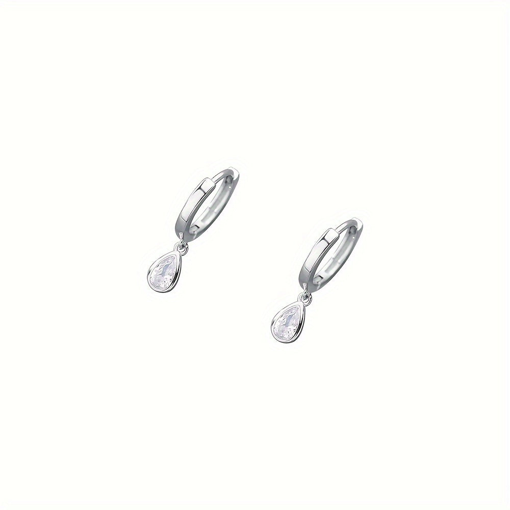 Elegant and versatile hoop earrings made of pure 925 silver with sparkling cubic zirconia water drop pendants. Perfect for everyday wear without any plating.