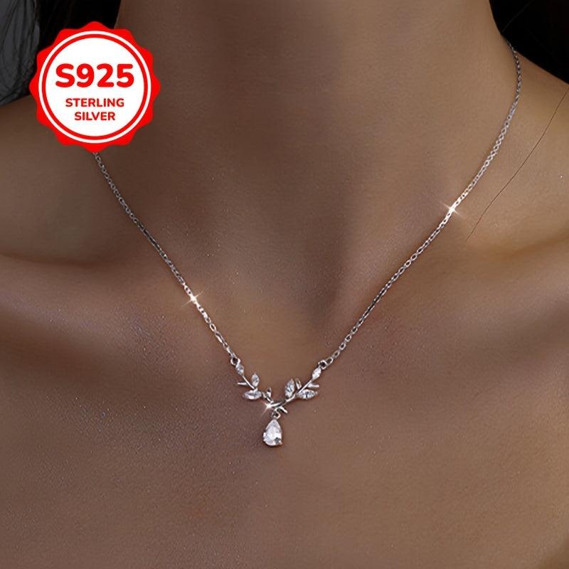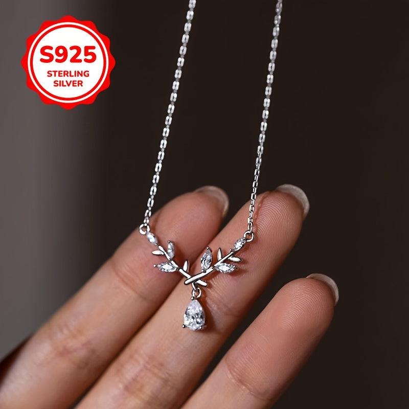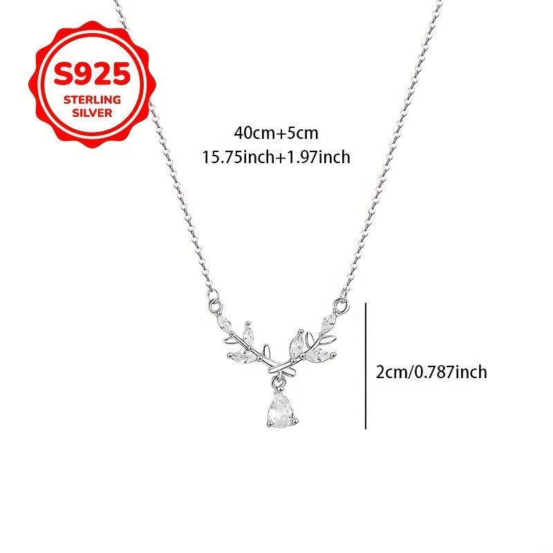 925 Silver Leaf Branch Pendant Necklace with Collarbone Chain