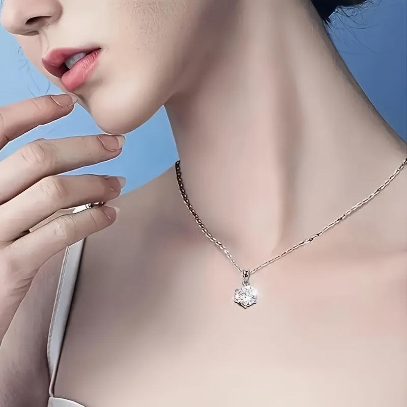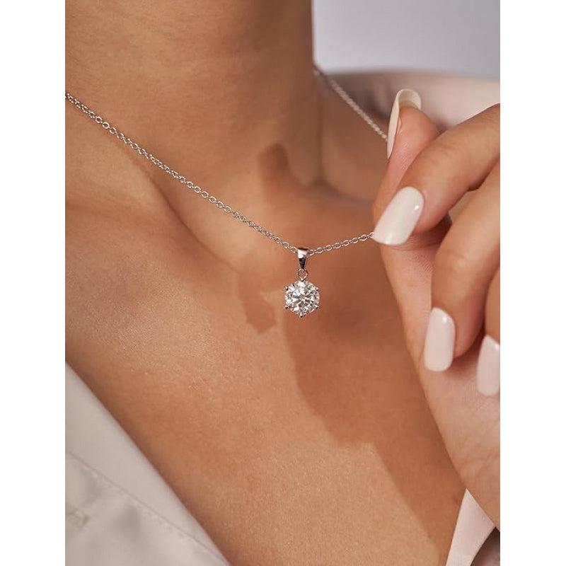 Add sparkle to your outfit with this stunning 925 sterling silver pendant necklace featuring a 2ct lab-cultured moissanite. Perfect for Christmas and special occasions.
