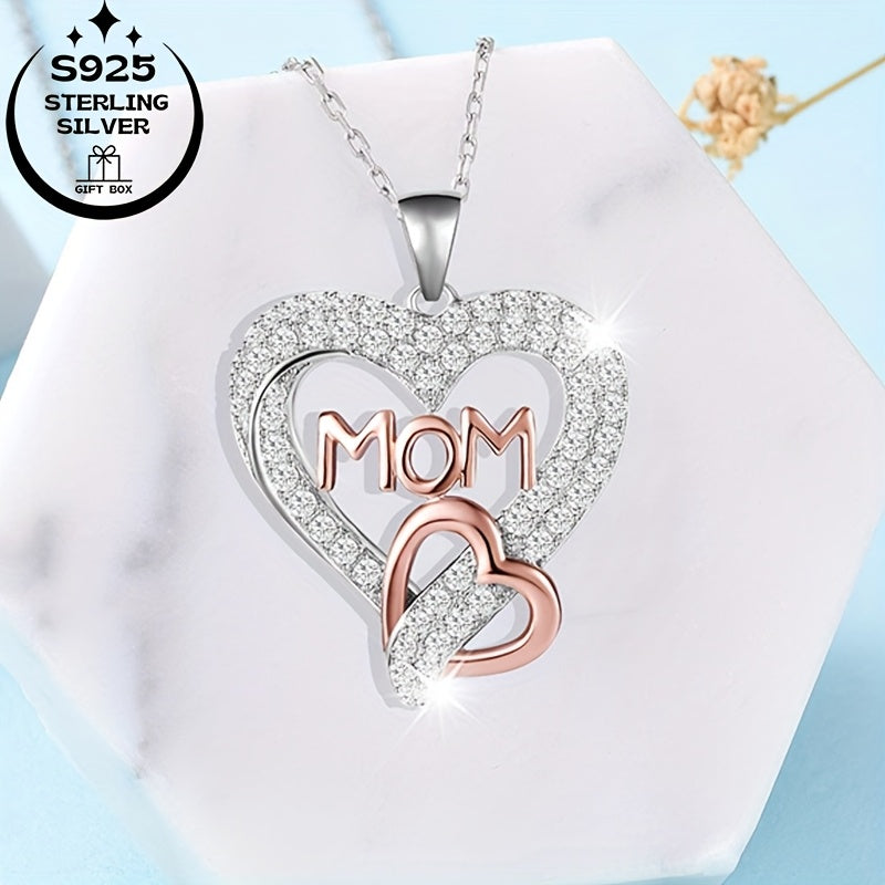 925 Silver MOM Heart Pendant Necklace with CZ Perfect Mother's Gift