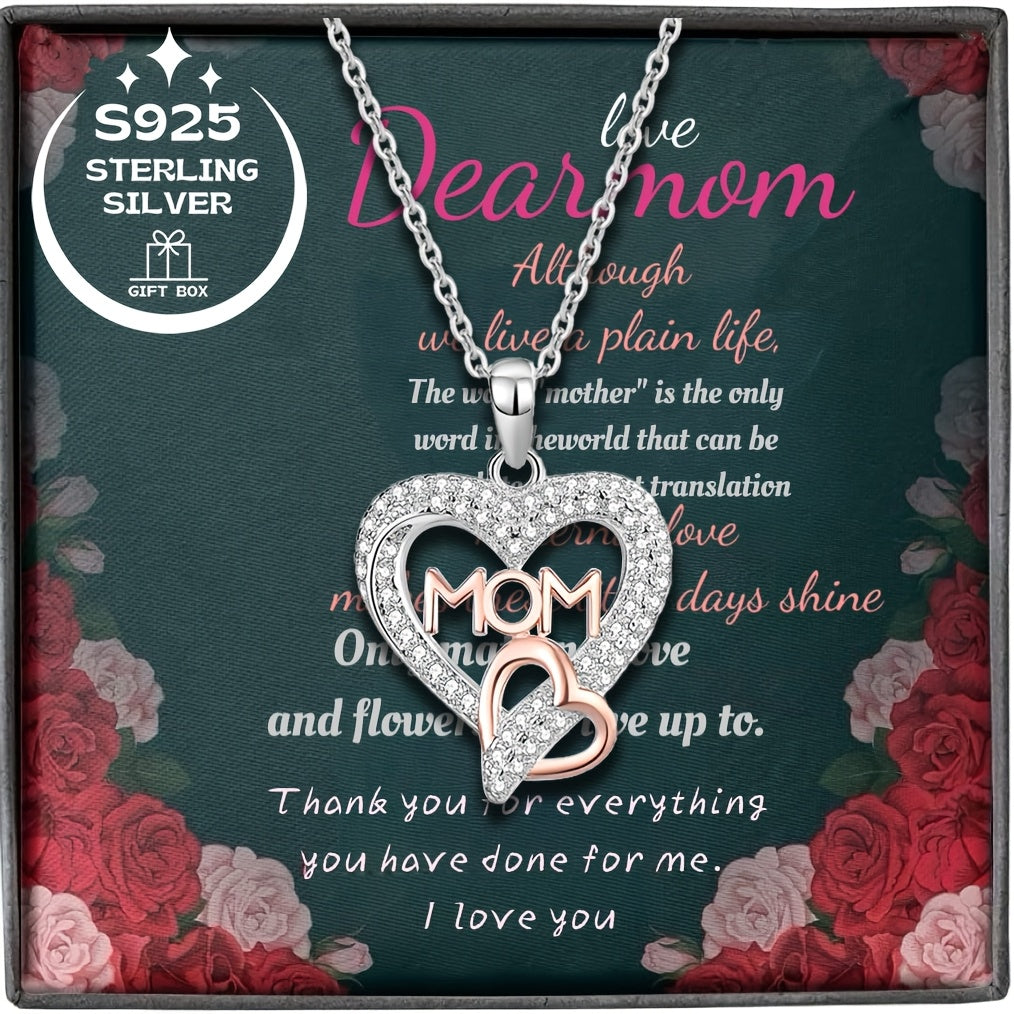 925 Silver MOM Heart Pendant Necklace with CZ Perfect Mother&
