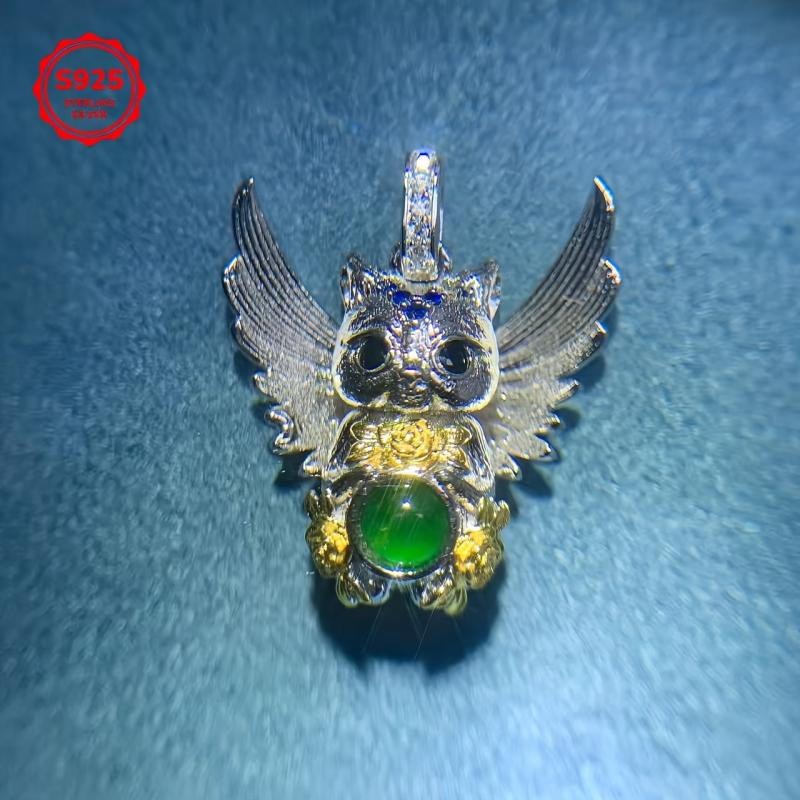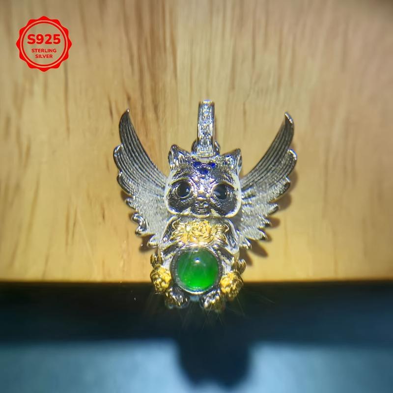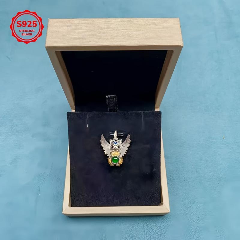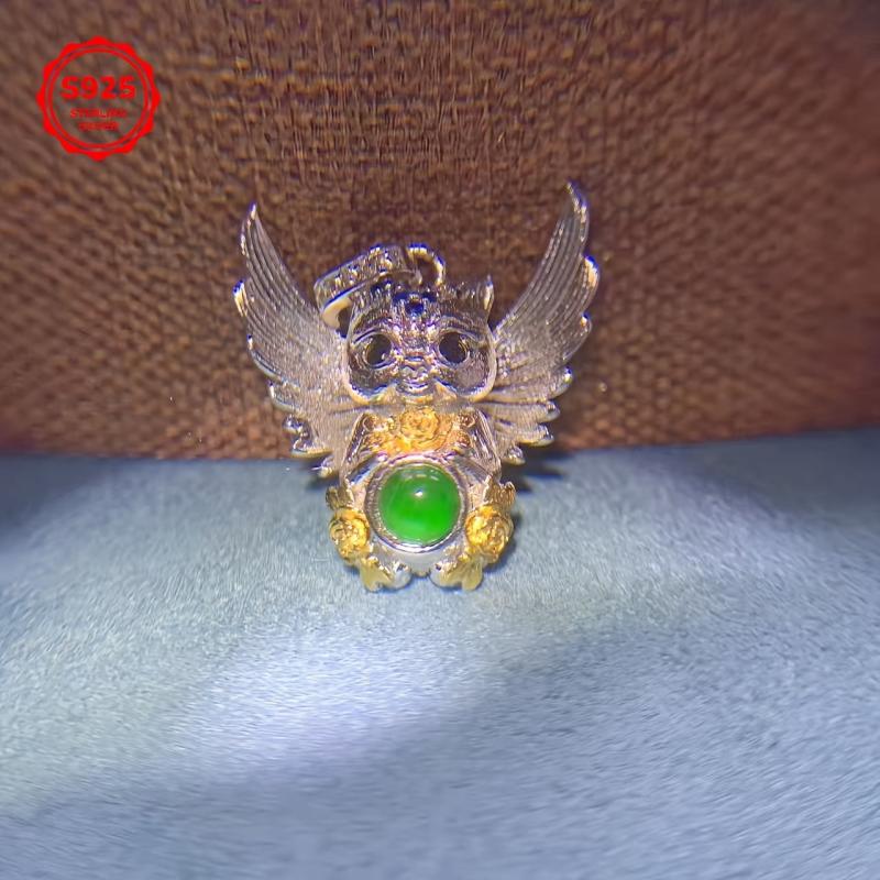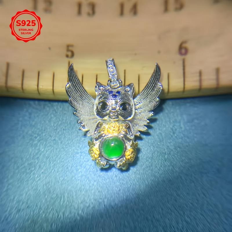 This 925 silver pendant features a natural stone Tmall Elf design. It is a perfect gift for any special occasion. Comes with a silver inlay.