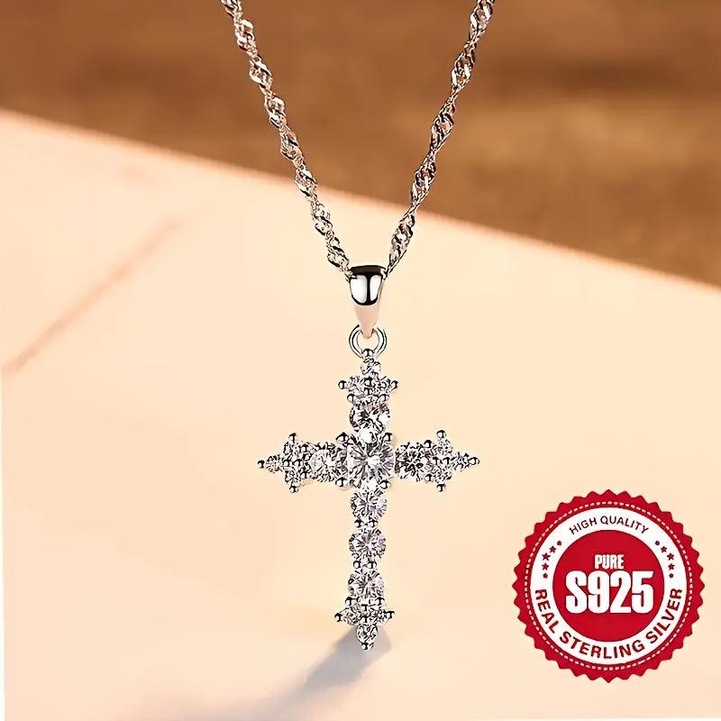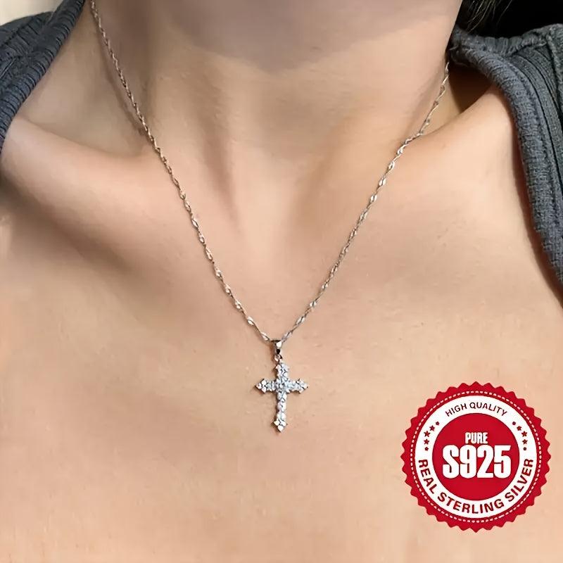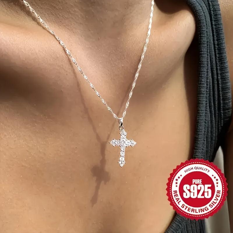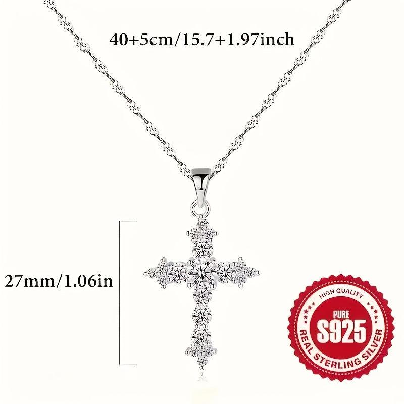 This elegant 925 silver necklace features a stunning CZ cross pendant. It is hypoallergenic and suitable for daily wear as well as special occasions.