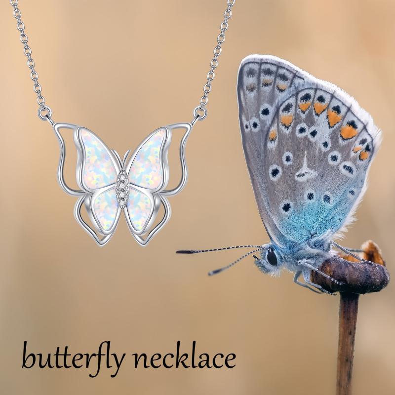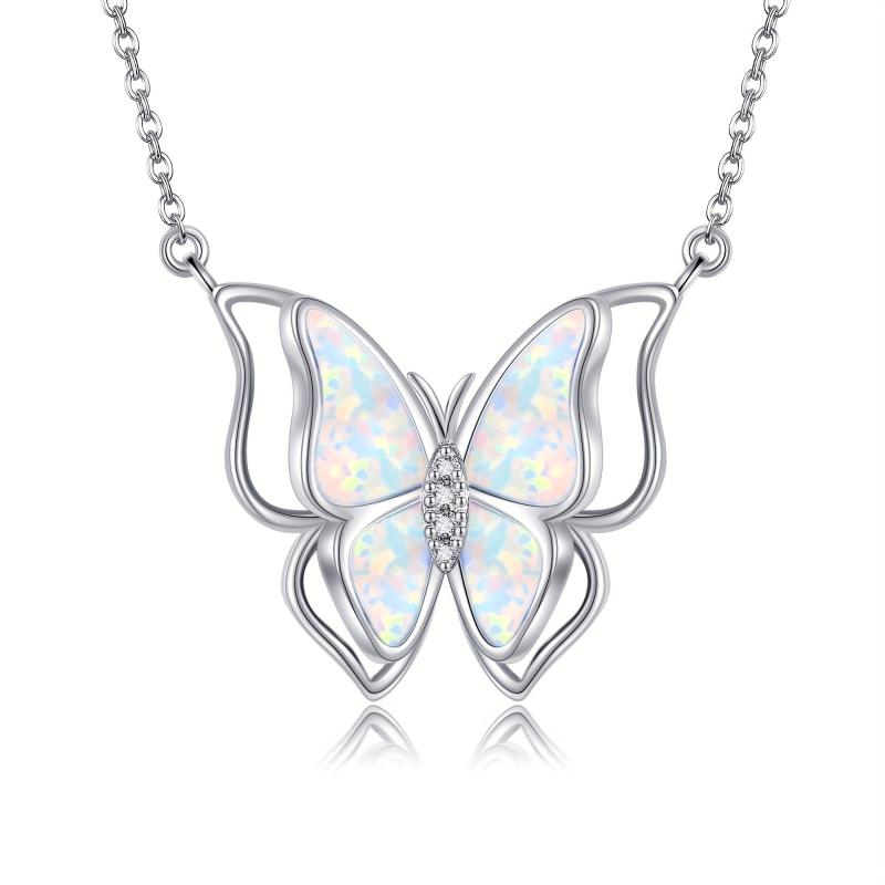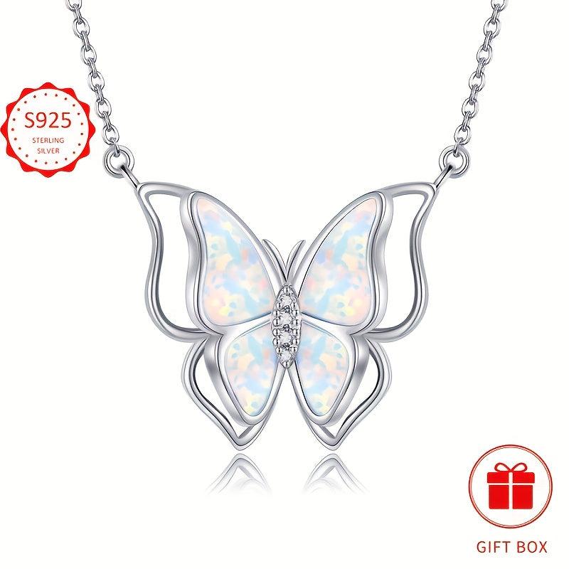 Adorn yourself with this charming 925 sterling silver butterfly necklace featuring an opal pendant. A delicate and elegant piece suitable for any occasion.