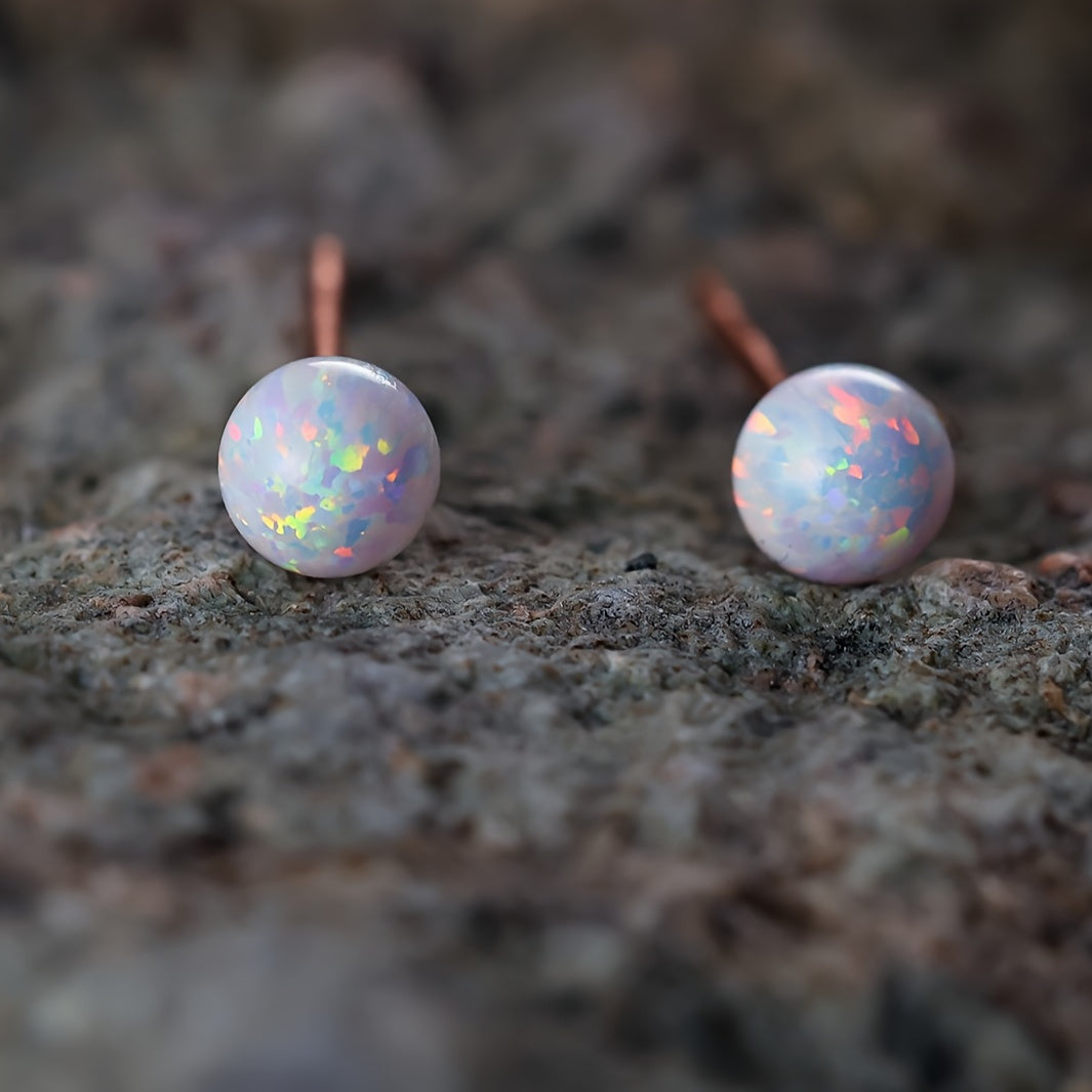 Add a touch of vintage charm with these 925 sterling silver stud earrings featuring synthetic opal polished spheres. Suitable for daily wear and special occasions.